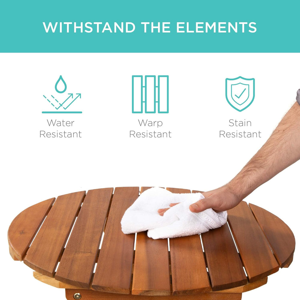 Best Choice Products - Juego de bistró de madera de acacia (3 piezas), muebles plegables adecuados para patio, jardín, balcón, terraza; incluye 2 sillas, mesa auxiliar redonda, terminación teca natural