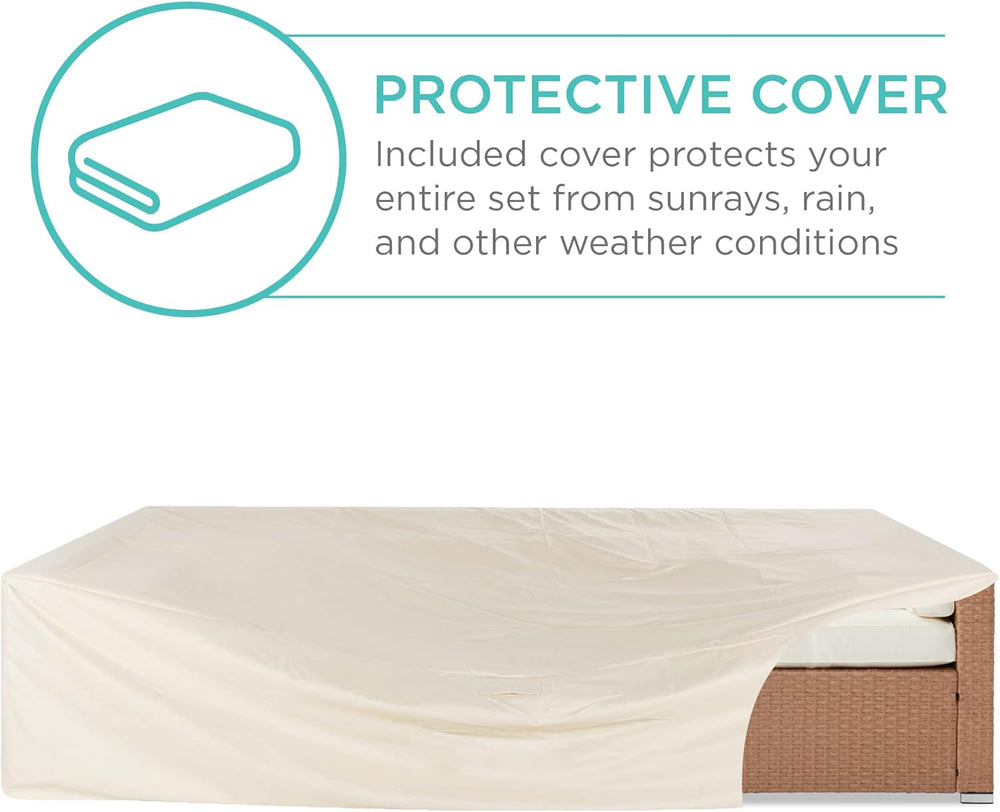 Best Choice Products Juego de sofá modular de mimbre modular de 7 piezas para exteriores con 6 sillas, 2 almohadas, clips de asiento, mesa auxiliar, funda incluida, natural/marfil