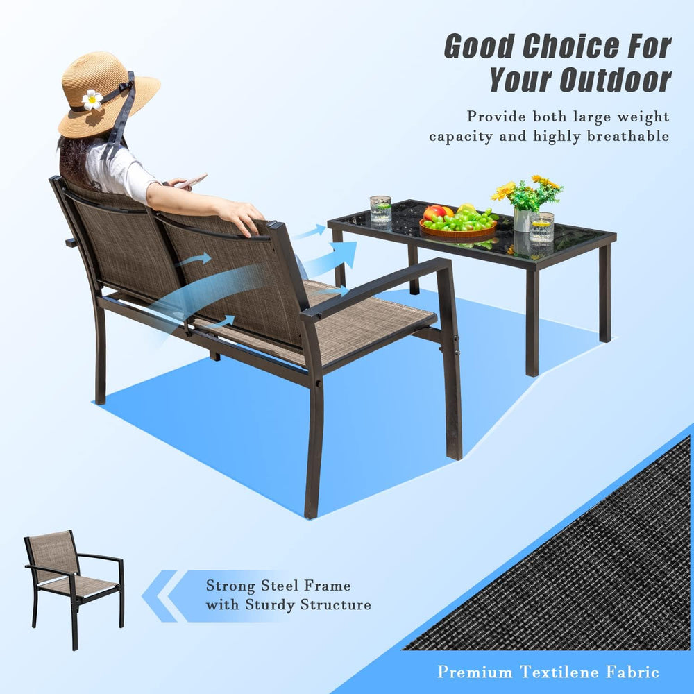 Devoko - Juego de 4 piezas de muebles de patio al aire libre para jardín, sillas y mesa de café de cristal para patio o terraza, Marrón
