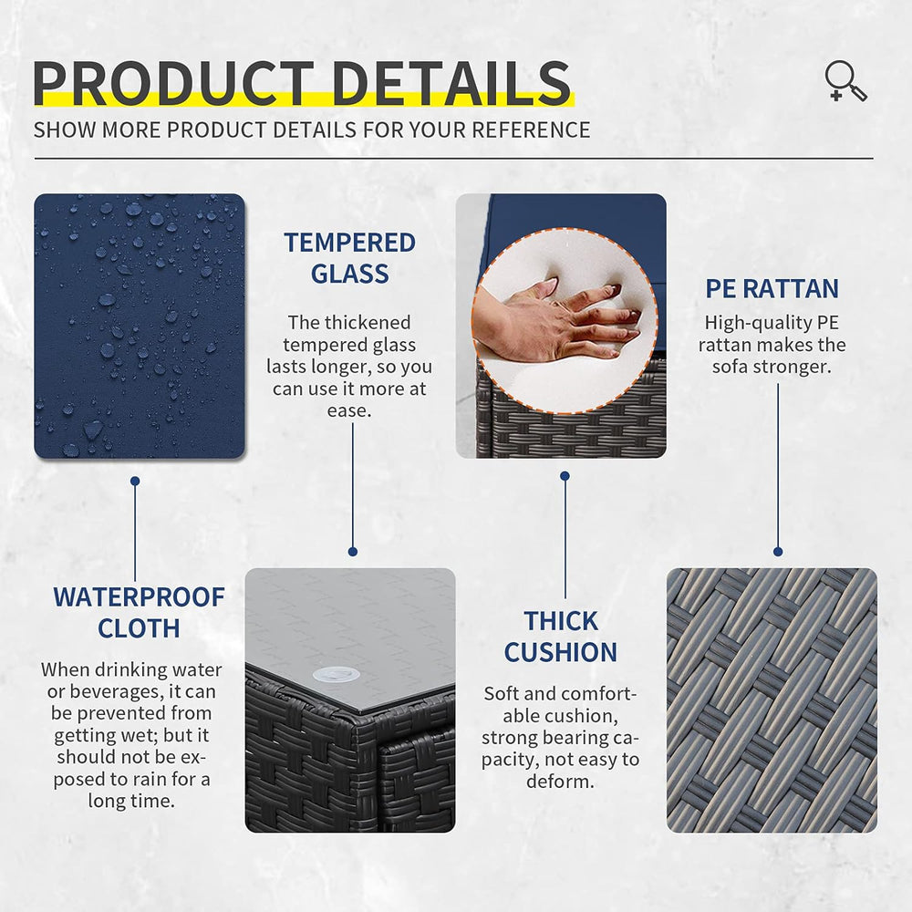 Lviden Juego de muebles de mimbre PE para exteriores, 7 piezas, juego de sofá de conversación seccional de ratán para patio, con cojines azul marino y mesa superior de vidrio está agotado y se enviará tan pronto como vuelva a estar disponible.