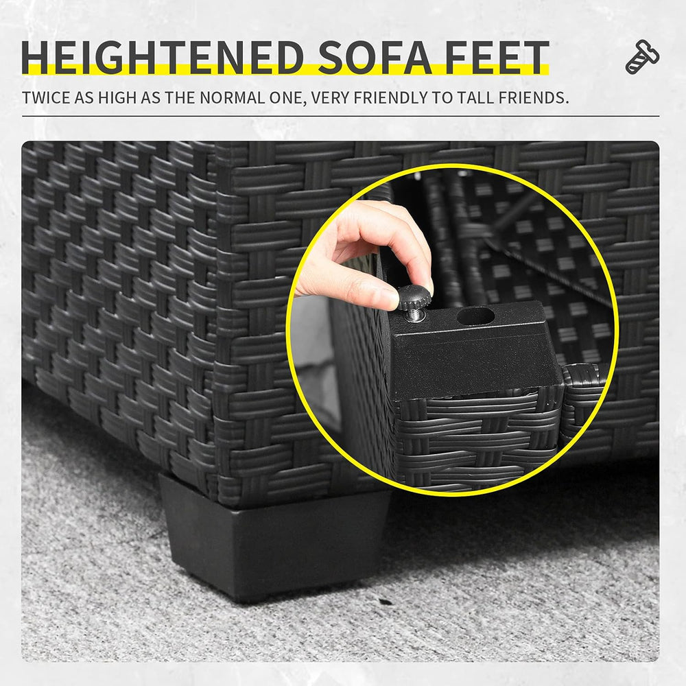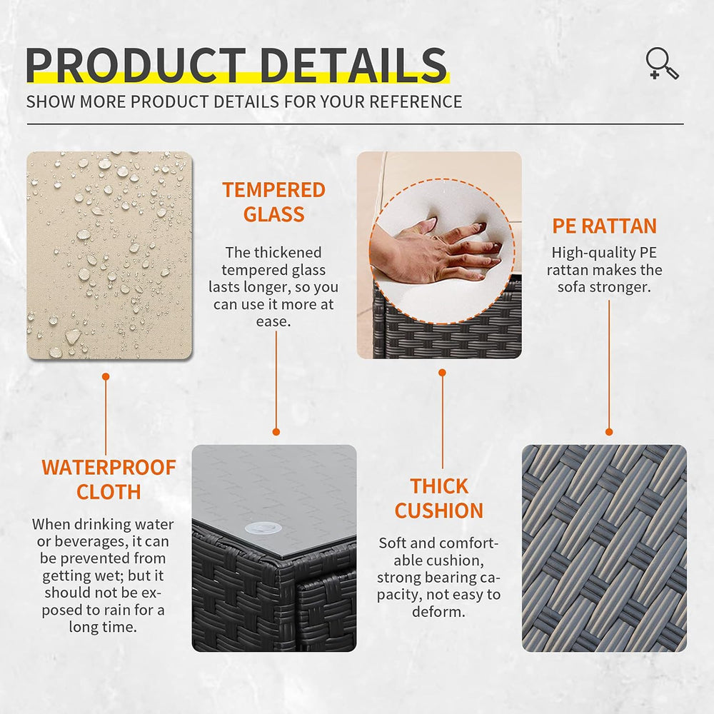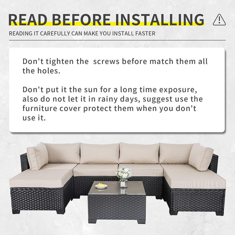 Lviden Juego de muebles de mimbre PE para exteriores, 7 piezas, juego de sofá de conversación seccional de ratán para patio, con cojines caqui y mesa superior de vidrio está agotado y se enviará tan pronto como vuelva a estar disponible.