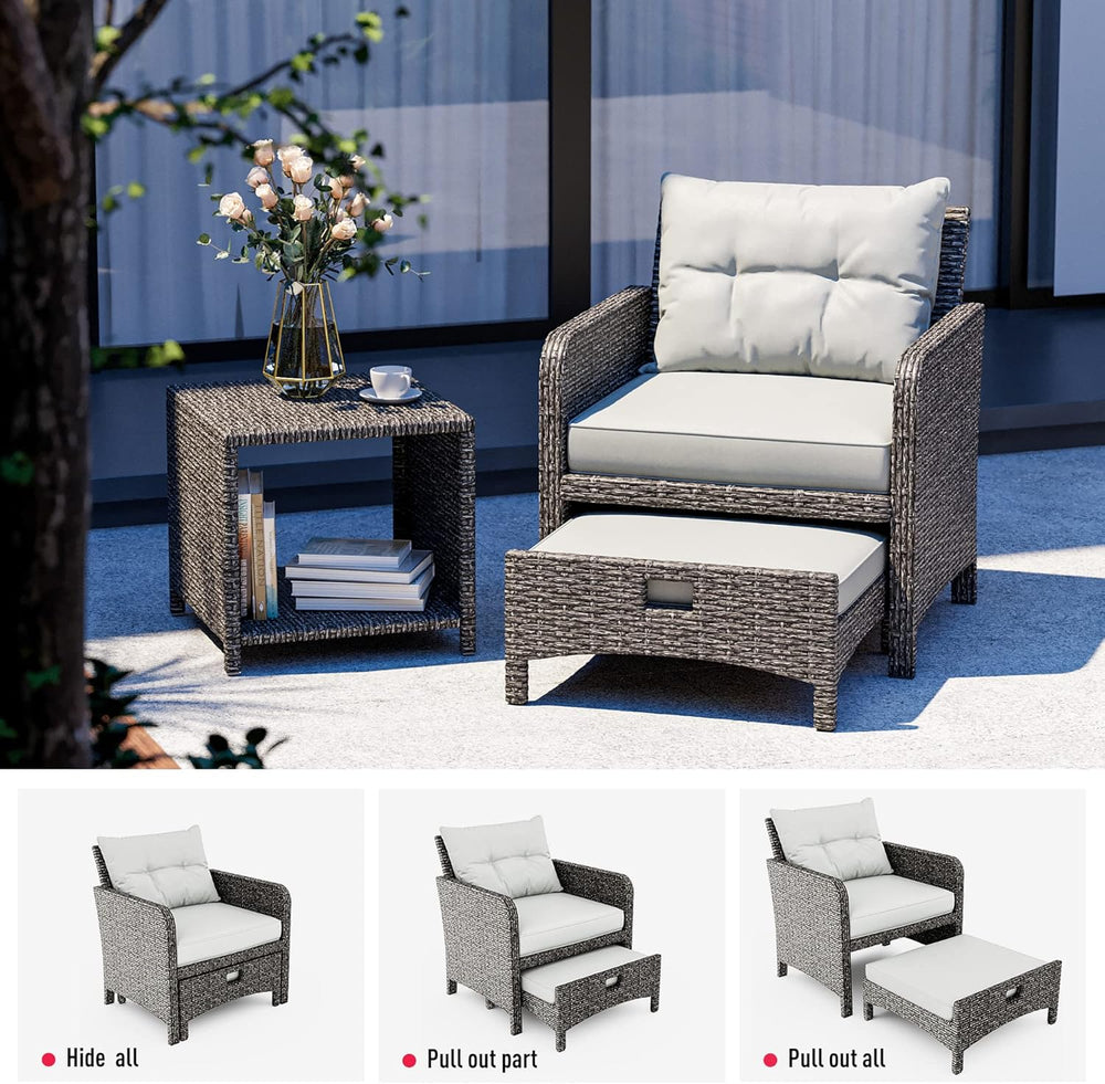 Pamapic Juego de 5 muebles de mimbre para patio, sillas de patio al aire libre con otomanas, muebles de conversación con mesa auxiliar para jardín junto a la piscina, balcón (cojín gris + ratán gris)