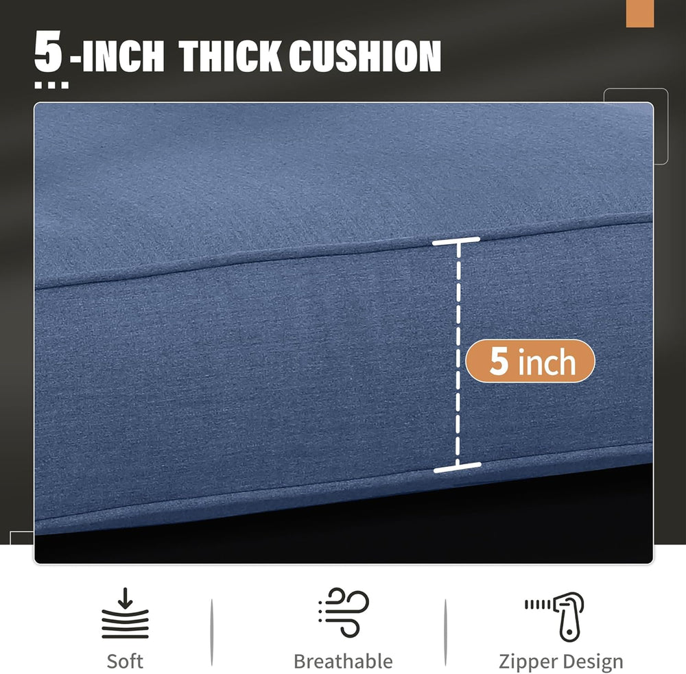 Solaste Juego de muebles de aluminio para patio, 5 piezas, moderno juego de conversación al aire libre, sofá seccional con cojín mejorado y mesa auxiliar, marco negro y cojín azul está agotado y se enviará tan pronto como vuelva a estar disponible.