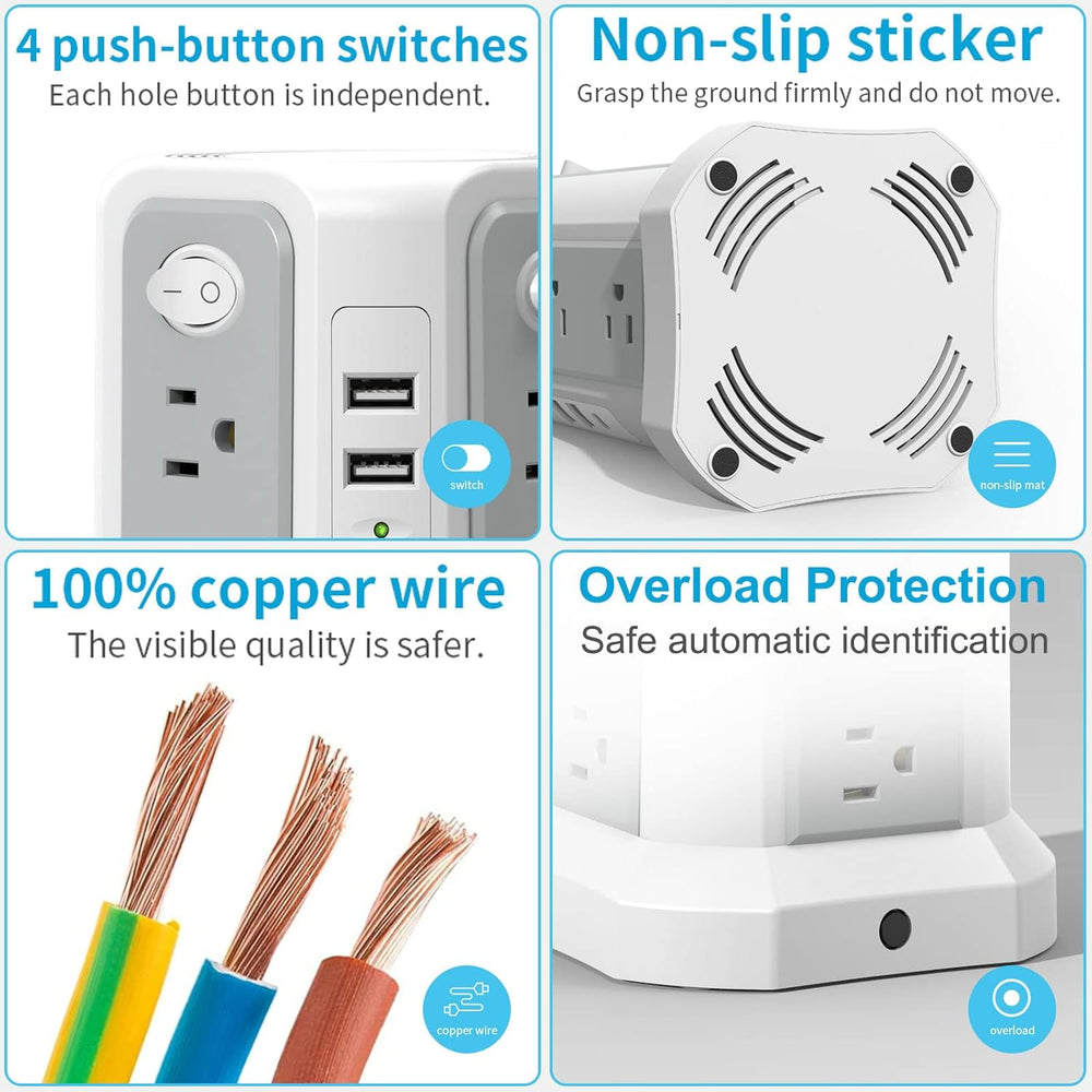 Cable de extensión largo de 10 pies 1625 W | 13 A con múltiples