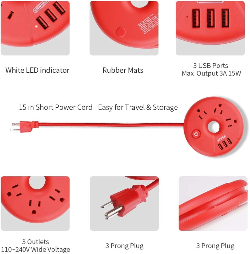 NTONPOWER - Tira de alimentación USB, estación de carga Rojo