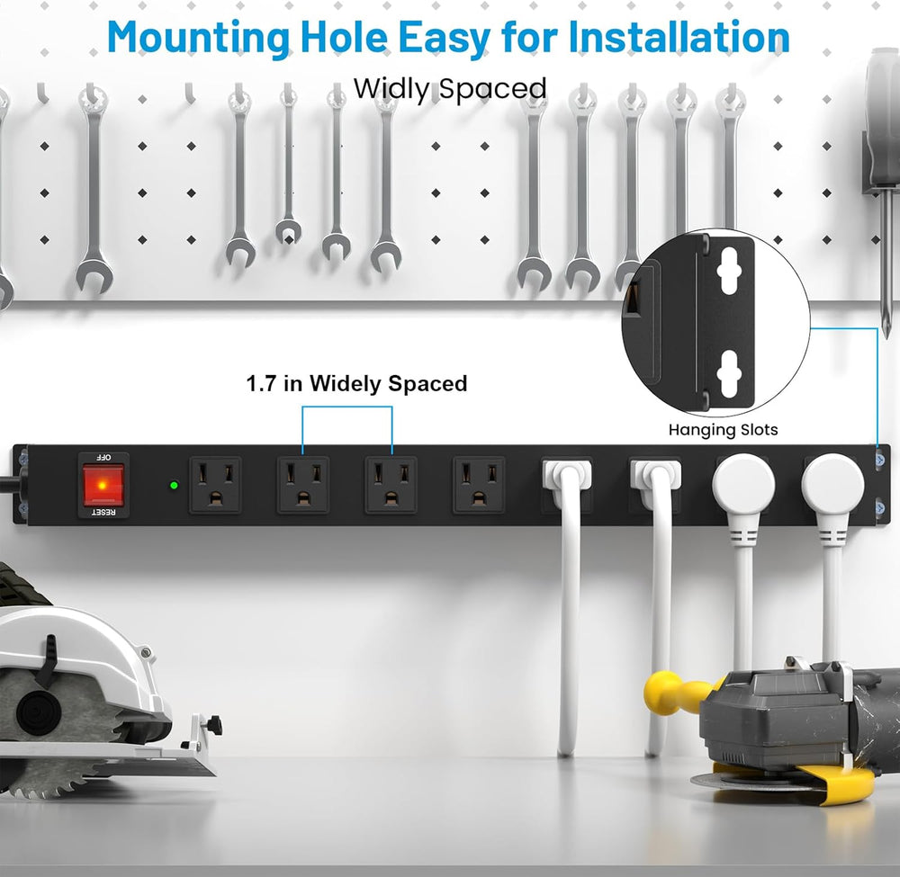 Sobre este artí Interruptor de actualización: Actualice de un interruptor pequeño a un interruptor gra que cuenta con un disyuntor integrado de 1 nuestro protector de sobretensiones de regleta larga actúa o protección contra sobrecarga s de cortocircu asegurando la seguridad de sus dispositivos conectados. Opciones de colocación versátiles: nuestra regleta se puede montar en la pared sin esfuerzo o colocarse cómodamente debajo de su escritorio. Su diseño flexible permite un fácil acceso y almacenamiento organiz lo que lo convierte en la solución de energía ideal para cualquier configuración. Regleta de alimentación resistente: hecha de metal durad esta regleta de alimentación de alta resistencia garantiza la longevidad y la seguri proporcionando una fuente de alimentación confiable para todos sus dispositivos. Con 8 tomacorrientes y 1.7 pulgadas de ancho espaci la solución perfecta ideal para enchufes adaptadores más grandes utilizados en espacios. Cable de extensión de 6 pies: con un generoso cable de alimentación de 6 p nuestra regleta ofrece flexibilidad y alcance extend lo que le permite alimentar sus dispositivos con facili independientemente de su colocación. Regleta de metal para montaje en pared: se monta en la pared o debajo del escritorio en escritorios d lo que la hace perfecta para su gar oficina o instalación industrial. Ya sea en c en una oficina o en un entorno industr esta regleta está diseñada para satisfacer tus diversas necesidades de ener atendiendo a diferentes entornos de manera efectiva.