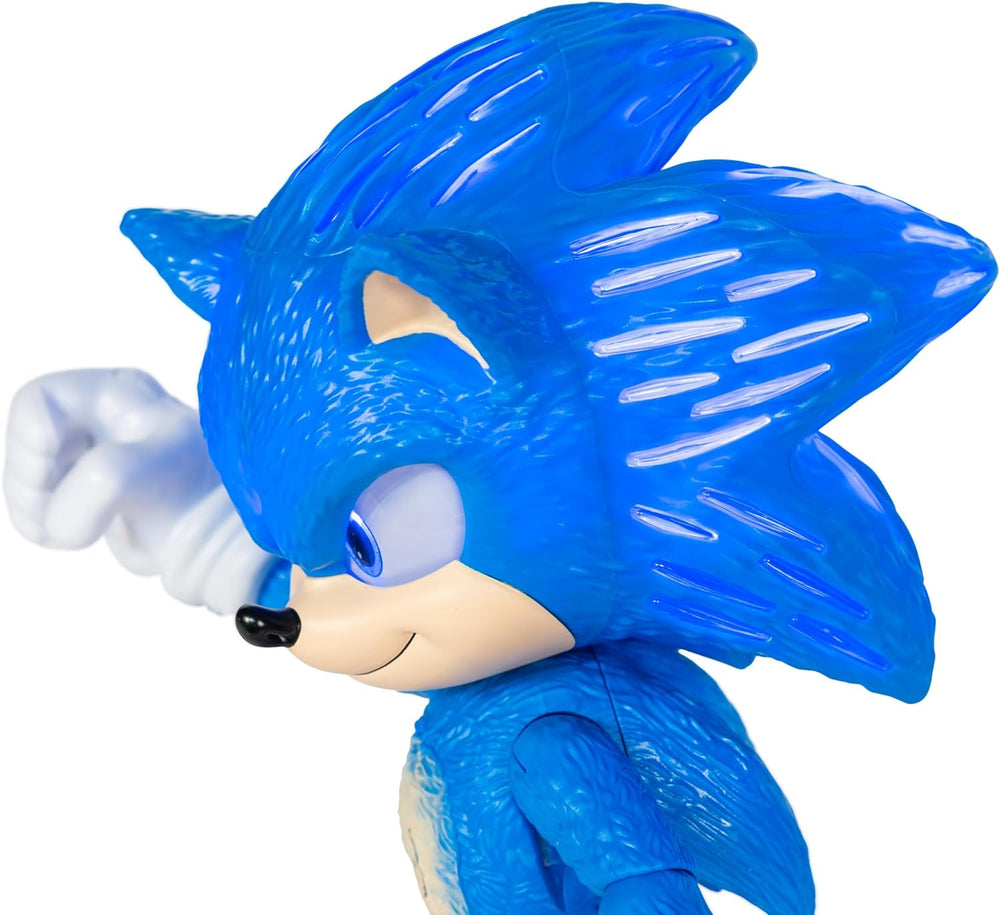 Figura de escala de 12 pulgadas inspirada en las películas de Sonic the Hedgehog. ¡Incluye más de 30 frases y sonidos icónicos y humorísticos de las películas! Ojos y púas que se iluminan al presionar el pecho de Sonic ¡Presiona las manos y zapatillas de Sonic para activar frases y sonidos! R ndado para niños de 3 años en adelante. ? Ver más detalles del producto ¡Esta figura de Sonic de 12" con estilo de película es el juguete definitivo de Sonic! Con 15 puntos de articulac un aspecto realista de pelíc más de 30 frases icónicas y divertidas de las pelícu ¡y se ilumina! Presión el pecho de Sonic para activar los ojos y púas que se iluminan ¡Presiona las manos y zapatillas de Sonic para activar las frases y sonidos y dar vida a la acción! Esta figura es perfecta para fans y coleccionistas que quieren llevar el espíritu. aventurero de Sonic a su mundo - Figura de 12" de escala de película inspirada en las películas de Sonic the Hedgehog - Incluye más de 30 frases icónicas y divertidas de las películas - Ojos y púas que se iluminan al presionar el pecho de Sonic - Presiona las manos y zapatillas de Sonic para activar las frases y sonidos.