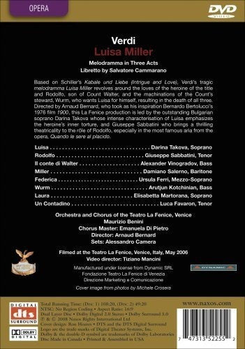 DVD - Verdi: Luisa Miller está agotado y se enviará tan pronto como vuelva a estar disponible.