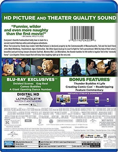 El osito de peluche favorito de todos ha vuelto para una segunda ronda de divertidas travesuras y aventuras escandalosas. Cuando Ted (expresado por el creador de Family Guy, Seth MacFarlane) es declarado propiedad de la Commonwealth de Massachusetts, Ted y su mejor amigo John (Mark Wahlberg, Transformers: Age of Extinction, The Other Guys) deben ir a la corte para luchar por la personalidad de Ted. Con la ayuda de su abogada inteligente, hermosa (y amante de la marihuana) (Amanda Seyfried, Mamma Mia !, Les Misérables), los amigos del trueno por la vida luchan por legalizar a Ted en esta secuela "perversamente divertida" (Los Angeles Times) que mantén a los fanáticos riendo hasta el final.