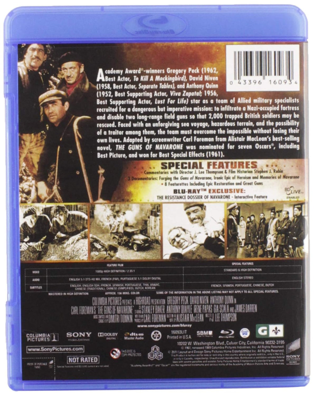 Product Description Gregory P Anthony Quinn and David Niven are Allied saboteurs assigned an impossible mission: infiltrate an impregnable Nazi-held island and destroy the two enormous long-range field guns that prevent the rescue of 2,000 trapped British soldiers. Blacklisted screenwriter Carl Foreman (High Noon,The Bridge on the River Kwai) was determined to re-establish both his name and credibility after spending most of the 5 working in anonymity. To a plish t he decided to bring Alistair MacLea best-selling no The Guns of Navar to the screen ed by an all-star cast and produced on a grand sc the film was an enormous succ receiving seven 1961 Academy Award(r) nominations (including Best Picture) and winning for Best Special Effects. Although Foreman achieved his g it was MacLean who would wind up the true beneficiary; his novels became the source for many high adventure screen ep including Ice Station Zebra and Where Eagles Dare. Howe it is The Guns of Navarone that remains not only the best of the MacLean adaptati but one of the greatest action adventure spectacles ever produced. Amazo This rous explosive 1961 WWII advent based on Alistair MacLea thrilling no turns the war thriller into a deadly caper film. Gregory Peck heads a star-studded cast charged with a near impossible mission: destroy a pair of German guns nestled in a protective cave on the strategic Mediterranean island of Navar from where they can control a vital sea passage. As world famous mountain climber turned British army Captain Mall Peck leads a guerrilla force posed of the humanistic explosives exp Miller (David Niv the ruthless Greek patriot with a gru Stavros (Anthony Qui veteran special forces soldier Brown (Stanley Bak and the c quiet young marksman Pappadimos (James Darren). This disparate collection of classic types must ove e internal confli enemy atta betra and capture to plete their mission. Director J. Lee Thompson sets a driving pace for this exciting (if familiar) military operat a succession of close ca pitched batt and last-minute escapes as our heroes infiltrate the garrisoned town with the help of resistance leader Maria (Irene Papas) and plot their entry into the heavily guarded mountain fort. Carl Forema screenplay embraces MacLea role call of clichés and delivers them with st creating one of the liveliest mixes of espio and good old-fashioned military derring-do put on film. In 1 the sequel Force 10 from Navarone was relea but MacLean fans will prefer to check out the action-packed thriller Where Eagles Dare. --Sean Axmaker
