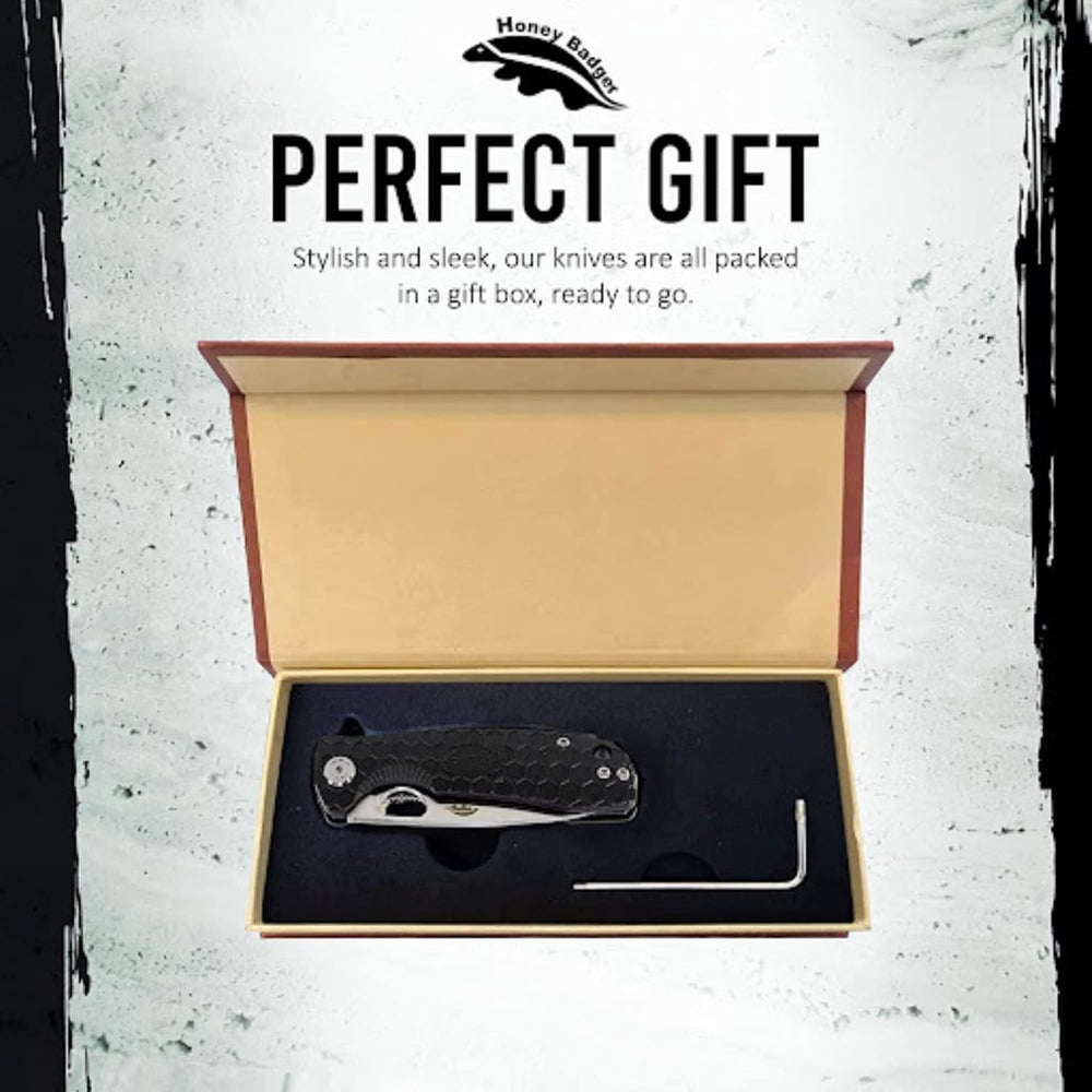 Usos r ndados para producto Fishing Hunting Camping Tactical Western Active Características especiales Bolsillo profundo para lle Incluye caja de reg Man Herramienta Torx inclu Acero 8Cr1 ovBolsillo profundo para lle Incluye caja de reg Man Herramienta Torx inclu Acero 8Cr1 ov Rango de edad (descripción) Adulto Componentes incluidos Caja de regalo y herramienta Torx Material del mango Nailon reforzado con fibra de vidrio Color Grande Tanto Azul Material de la hoja 8Cr1 ov Estilo HB1324 Longitud de la hoja 3,63 Pulgadas Ver más Sobre este artículo Dimensiones: la longitud de la hoja de acero del cuchillo de bolsillo de tejón miel de gran tamaño es de 3.622 la longitud total es de 8.268 la longitud cerrada es de 4.606 y el peso es de 3.88 oz. Este cuchillo tanto reversible cabe perfectamente en tu bolsillo y tus manos. El agarre está hecho de nailon reforzado con fibra con un patrón hexagonal único de panal para formar un agarre antideslizante. Cuchillo multiusos: afilado y lig este cuchillo plegable de bolsillo se puede utilizar para muchas funcio desde pelar hasta pescar. La molienda plana y el punto alto de una hoja Tanto son extremadamente fuertes e ideales para perforar objetos duros. Este diseño hace que el cuchillo sea fácil de afilar. Es el lemento perfecto para cualquier bolsi bo caja de herramien moch equ banco de trabajo o cinturón. Es ideal regalo de padrino y regalo del día del padre. Acción suave: el tejón de miel es famoso por su acción de apertura de aleta increíblemente suave. El movimiento suave se debe a nuestros exclusivos rodamientos de 18 rodillos en el pivote. Abre este cuchillo con la pestaña de aleta o el agujero ergonómico para el pulgar. Con su clip de bolsillo profundo ambidiestro para mano izquierda y dere este es el cuchillo que puedes utilizar con confianza. Cuchillo EDC perfecto para llevar todos los días: el cuchillo de bolsillo plegable Honey Badger con un clip es el mejor cuchillo de bolsillo plegable EDC con una pestaña de aleta y bloqueo de forro. Utiliza este cuchillo plegable para llevar todos los días un cuchillo al aire li c utilidad y camping. El tejón de miel es ideal para una bolsa de insec equipo de tuff y cubier inado con un cuchillo multiherramienta.