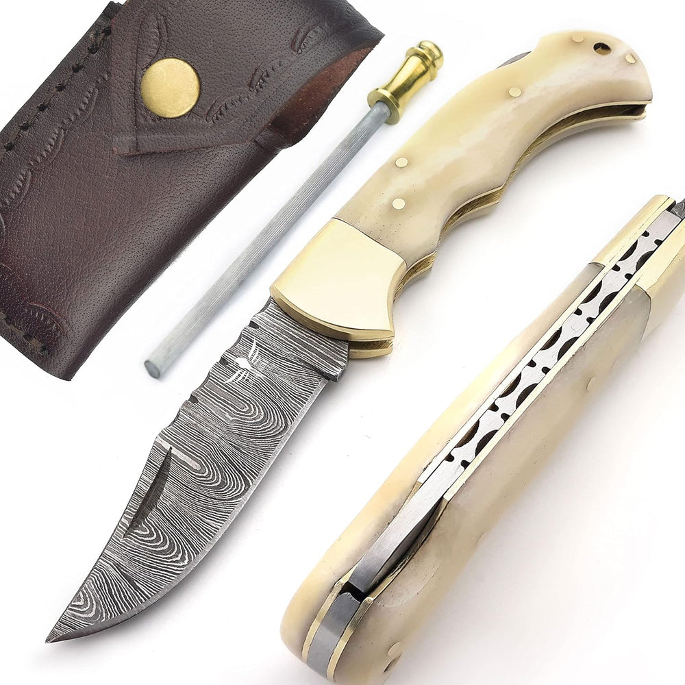 Cuchillo hecho a mano de alta calidad: cuchillos de bolsillo plegables de Damasco de 6.5 pulgadas para hombres con bloqueo tras cuchillo de Damasco de alta cali cuchillo de transporte dia un regalo perfecto para el día del padre para p marido.