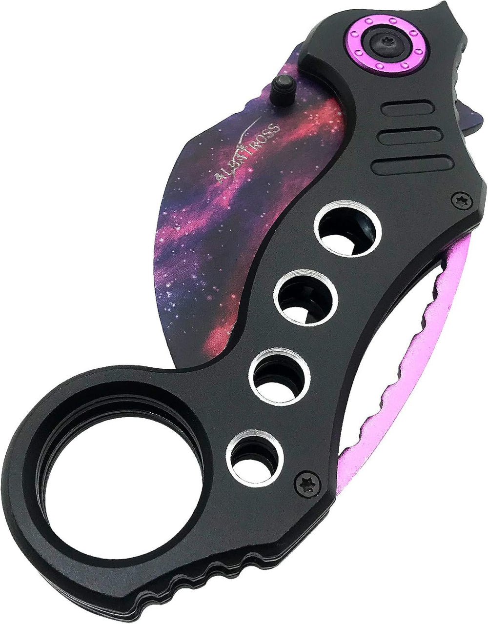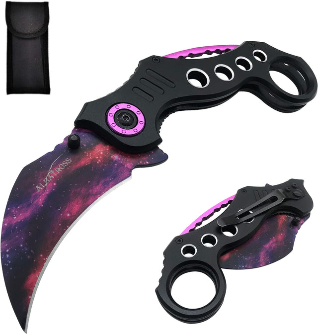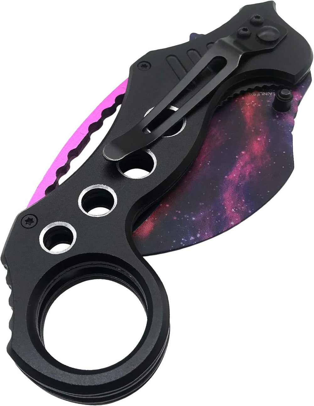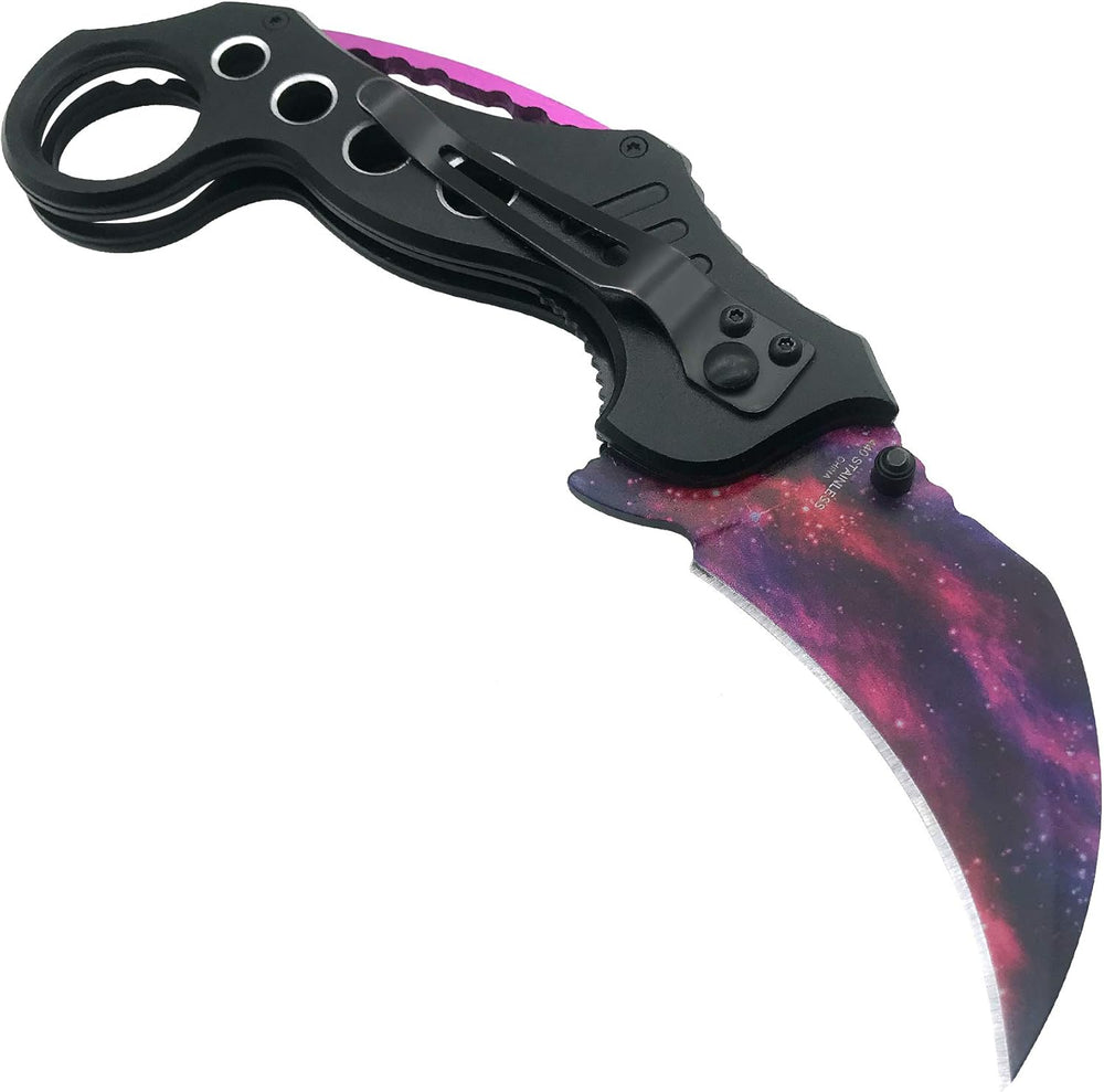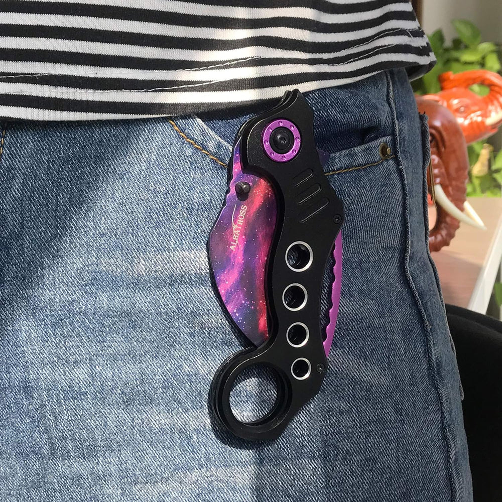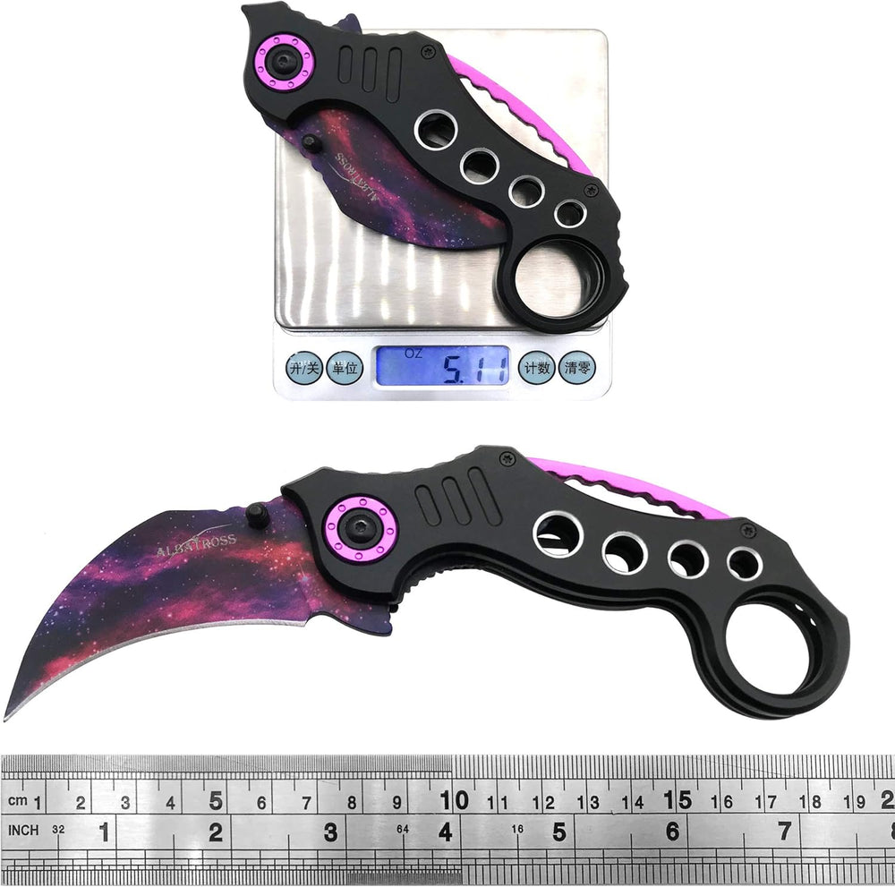 Sobre este artículo EDC Cool Pocket Knives 440 Cuchillo de garra afilado táctico de acero inoxidable Acero inoxidable 440; longitud de hoja de 2.75 pulgadas; longitud cerrada de 5.25 pulgadas; longitud total de 8 pulgadas El cuchillo plegable asistido por resorte proporciona apertura con una sola m con bloqueo de fo seguro y cómodo de usar. Clip de bolsillo y bolsa de nailon para un transporte fácil y seguro; perfecto para acam pes al aire li pesa solo 5.5 onzas Bonita herramienta para camp c senderi aventura y uso doméstico; regalo de San Valentín para ami p herm j no mar regalo ideal para cazado pescado amantes de campamento. CARACTERÍSTICAS DESTACADAS: - Cuchillo de garra táctico de acero inoxidable 440 - Longitud de hoja de 2.75 pulgadas - Cierre asistido por resorte para una apertura fácil - Clip de bolsillo y bolsa de nailon para transporte seguro - Ideal para camp c senderismo y uso doméstico BENEFICIOS: - Fácil de usar con una sola mano - Ligero y portátil - Regalo perfecto para amantes de la aventura USOS POTENCIALES: - Camping - Caza - Senderismo - Uso doméstico