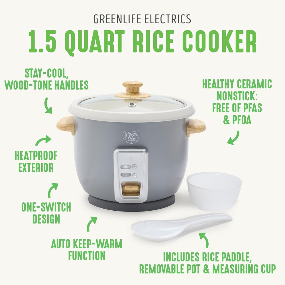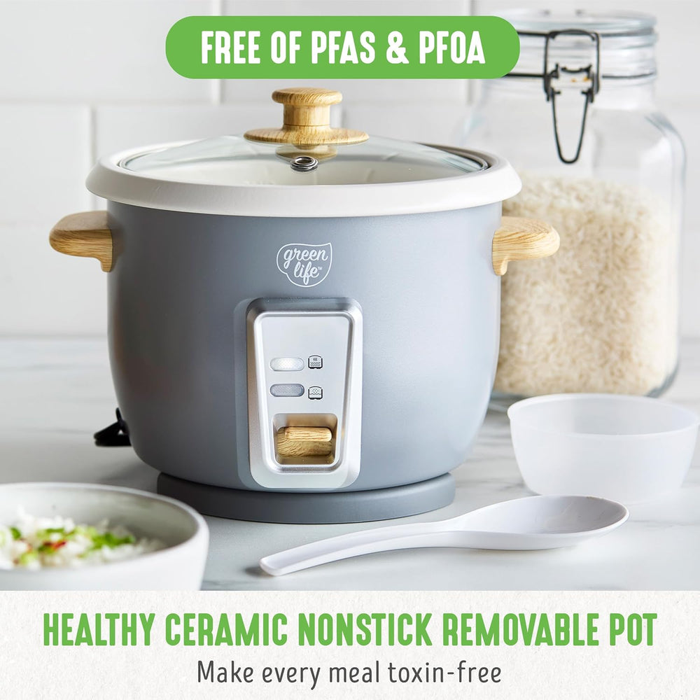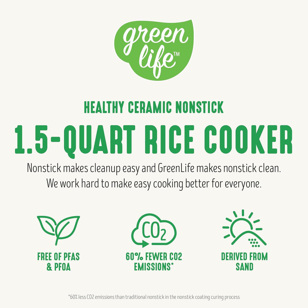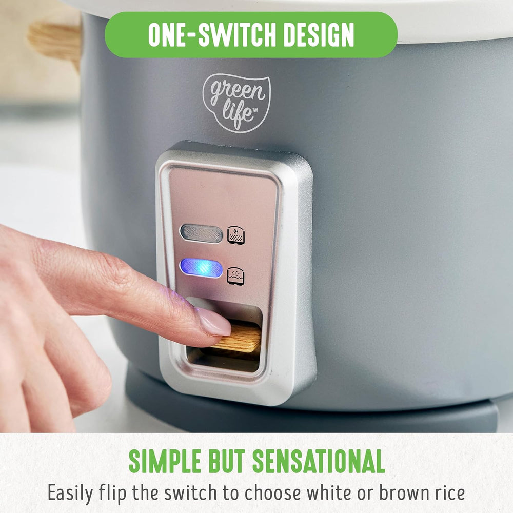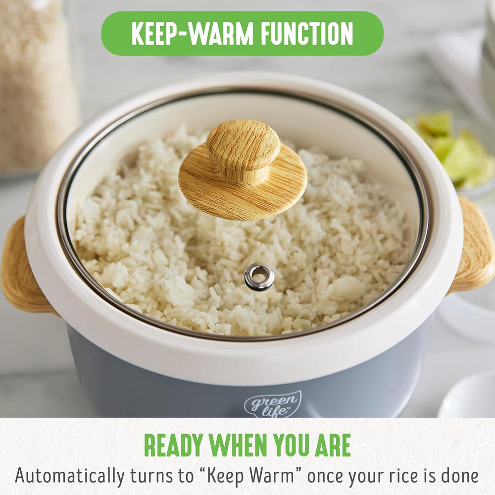 Arrocera GreenLife 6 Tazas, Cerámica Antiadherente, Auto Presets
