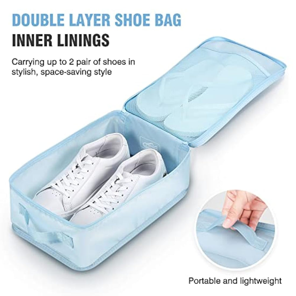 Talla Talla única Material Nylon Mossio Color Azul (Sky Blue) Tipo de cierre Button Número de sets 6 Sobre este artículo Cierre de Button Utiliza el mejor material y mano de obra exquisita. Tela de nailon más gruesa de alta cali cremalleras SBS de dos vías fáciles y costuras fi definitivamente las bolsas de viaje más bien hechas y duraderas que jamás hayas tenido Resuelve tu de viaje. ¿Preocupado por el sobreembalaje? ¿Siempre buscando una camiseta con un montón de ropa? ¿No tienes idea cuando revisas y tienes que volver a empacar? Todos estos cubos se pueden arreglar bien cuando tengas estos cubos de resión. Imprescindible. La mayoría de los denominados cubos de embalaje no vienen con CUBES. Mientras que este es definitivamente r tiene una bolsa de zapatos de doble capa que puede empacar un par de zapatillas y un par de zapatillas. Cubos de embalaje multifuncionales con varios tamaños. 2 grandes + 1 mediano + 2 pequeños cubos de embalaje y regalo para bolsa de zapatos de doble capa. Gran volumen interior para guardar todos tus accesorios de viaje ropa (camise chaque vaque pantalo ropa inter et zapa maquillaje y mucho más. Tamaño: Grande 19 x 13.8 x 4.7 pulgadas; Mediano 13.6 x 7.8 x 3 pulgadas; Pequeño 8.7 x 6.7 x 3.2 pulgadas; Bolsa de zapatos 12.4 x 7.5 x 4.7 pulgadas. Peso: 11.99 oz. Para maleta de 24 25 pulgadas. Todas las bolsas de embalaje se pueden almacenar en el cubo de embalaje más pequeño cuando no estén en uso.