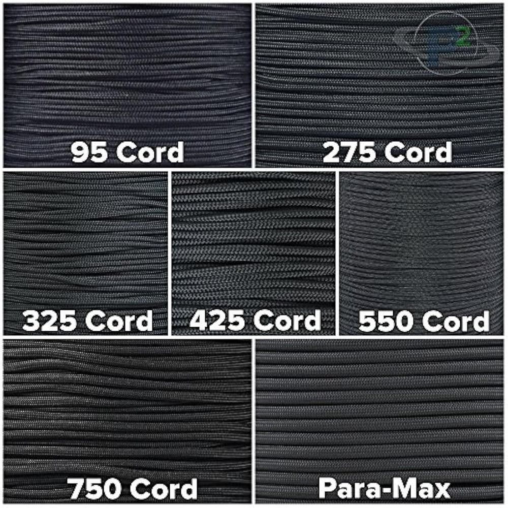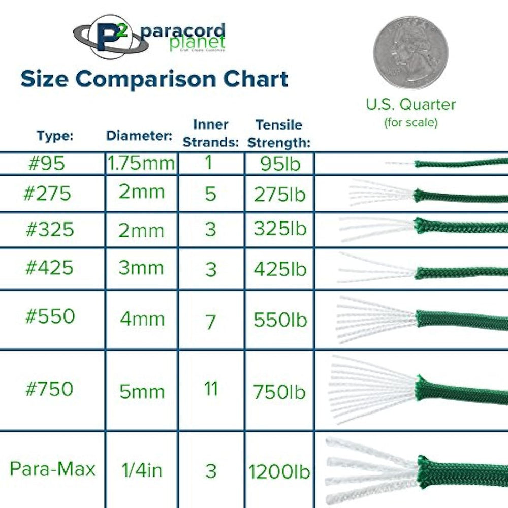 *** Características *** La mejor selección disponible: elige entre una variedad de tamaños o 95, 275, 325, 425, 550, 750 y Para-Max Paracord con una funda exterior de 100% nailon hecho en Estados Unidos que es resistente a la abrasión, el moho y la luz solar UV. Patrón de calidad: nuestro cable es ideal para una variedad de riesgos, desde proyectos de manualidades en el hogar y bricolaje, para acampar al aire libre, senderismo, supervivencia, viajes, seguridad de carga y mucho más.Fuerte y versátil: cada tamaño de cuerda tiene una resistencia a la tracción diferente, que va de 95 a 1200 libras, lo que significa que hay un cable que es adecuado para tu proyecto.Amplia variedad de colores y tamaños: todos los tamaños de paracord (95, 275, 325, 425, 550, 750 y Para-Max) están disponibles en longitudes de 10, 25, 50, 100 y 250 pies y en un arco iris de colores.También conocido o: cuerda de paracaídas, cuerda de paracaídas, cuerda de paracaídas, para cable o paracaidismo.