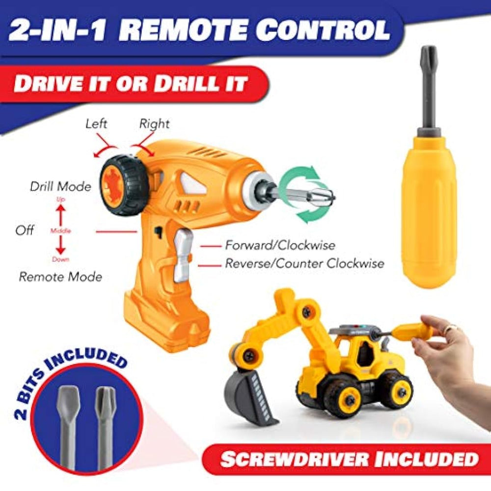 *** Características *** Asegúrate de que esto coincida al ingresar tu número de modelo. JUGUETES DE CONSTRUCCIÓN DE CAMIONES RC STEM 4 EN 1 PARA NIÑOS: Construye tu propio camión RC de 4 formas diferentes; Utilice el mando a distancia 2 en 1 o el taladro remoto incluido para construir un tractor de juguete, una apisonadora, una excavadora o un martillo neumático. Juego de 34 piezas de juguetes de construcción fáciles de montar: estos juguetes de construcción cuentan con pernos y piezas amigables con los niños, lo que los hace divertidos y fáciles de educar para los niños. 2 en 1 eléctrico taladro remoto: experimente la diversión de la ingeniería con el taladro de juguete eléctrico incluido y construir hasta 4 diferentes camiones de control remoto; cambiar al modo de control remoto y conducir sus vehículos de construcción Juguetes de juguete seguros y duraderos: estos camiones de juguete sin BPA y no tóxicos cuentan con piezas grandes y fáciles de usar que son perfectas para manos pequeñas de niños de 3 años en adelante; camión mide 10.5 pulgadas de largo x 5.9 pulgadas de ancho x 5.9 pulgadas de alto y pesa 1.93 libras. Camiones RC recargables para niños: este juego de juguetes de aprendizaje para niños incluye 1 batería recargable de camión teledirigido, cable de carga USB, y un destornillador Phillips de juguete para afinar rápidamente; el mando a distancia de taladro requiere 2 pilas AA (no incluidas). Asegúrate de que esto coincida al ingresar tu número de modelo. JUGUETES DE CONSTRUCCIÓN DE CAMIONES RC STEM 4 EN 1 PARA NIÑOS: Construye tu propio camión RC de 4 formas diferentes; Utilice el mando a distancia 2 en 1 o el taladro remoto incluido para construir un tractor de juguete, una apisonadora, una excavadora o un martillo neumático. Juego de 34 piezas de juguetes de construcción fáciles de montar: estos juguetes de construcción cuentan con pernos y piezas amigables con los niños, lo que los hace divertidos y fáciles de educar para los niños. 2 en 1 eléctrico taladro remoto: experimente la diversión de la ingeniería con el taladro de juguete eléctrico incluido y construir hasta 4 diferentes camiones de control remoto; cambiar al modo de control remoto y conducir sus vehículos de construcción Juguetes de juguete seguros y duraderos: estos camiones de juguete sin BPA y no tóxicos cuentan con piezas grandes y fáciles de usar que son perfectas para manos pequeñas de niños de 3 años en adelante; camión mide 10.5 pulgadas de largo x 5.9 pulgadas de ancho x 5.9 pulgadas de alto y pesa 1.93 libras. Camiones RC recargables para niños: este juego de juguetes de aprendizaje para niños incluye 1 batería recargable de camión teledirigido, cable de carga USB, y un destornillador Phillips de juguete para afinar rápidamente; el mando a distancia de taladro requiere 2 pilas AA (no incluidas). Calidad asegurada: diviértete aprendiendo juegos con este juego educativo de construcción de juguetes para niños; proporcionaremos un reembolso completo si no estás totalmente satisfecho con estos juguetes de construcción STEM para niños y niñas.