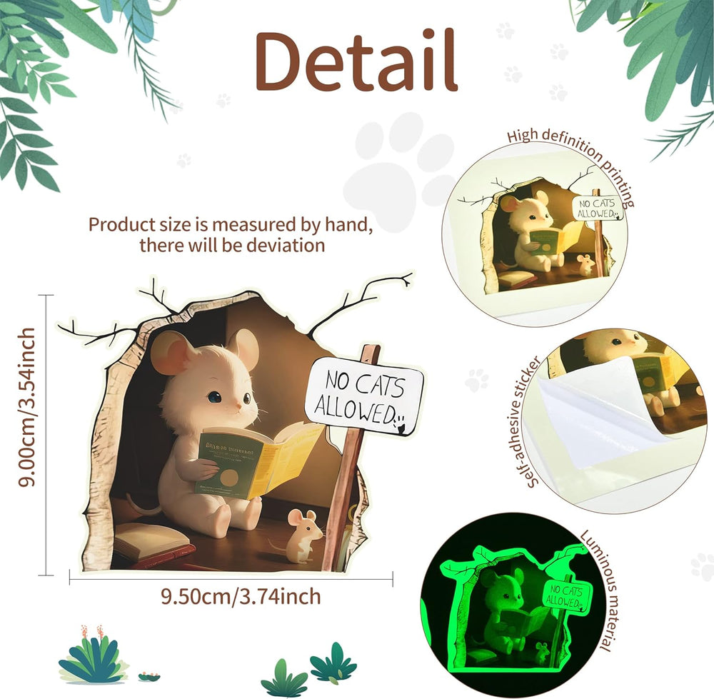 Sticker 3D Ratoncito, Arte Divertido, Brilla en la Oscuridad