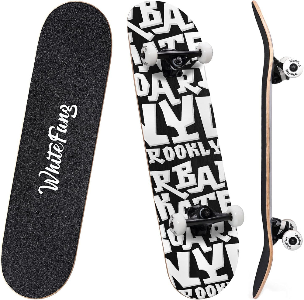 Acerca de este artí ?? Duradero y resistente: diseño cóncavo de doble patada de tamaño leto de 31,75" de largo × 7,88" de ancho con plataforma dura de arce canadiense de 7 ca resiste el impacto del skate y aprende nuevos trucos. La carga máxima es de hasta 220 lib duradera y resistente. ?? Le brinda una mejor experiencia: las ruedas de PU 95A de alta velocidad funcionan con rodamientos ABEC9 y bujes de PU de alto rebote 95A. Le brinda un mejor control del equilibrio y un efecto de absorción de impactos y le brinda una mejor experiencia en pat a. ?? No escatimamos en materiales: nuestra pat a está hecha de un diseño de patrón de impresión por transferencia de calor resistente al agua y resiste puede mantener el brillo durante mucho tiempo. La cinta de lija antideslizante de alta densidad te hace más seguro mientras andas en pat a. ?? No requiere ensamblaje: Recibirás una pat a leta que viene con un eje de aleación de magnalio resistente de 5" que te ayuda a ahorrar tiempo y molestias de ensamblaje. ¡Listo para jugar desde el primer momento! ?? Adecuado para patinadores de todos los niveles: nuestra pat a es adecuada para que patinadores de cualquier nivel disfruten del tiempo de entretenimiento al aire li sin importar si eres un patinador principiante o experimentado. Compre ahora: ¡sus hijos están esperando! ? Ver más detalles del producto Tabla de Skate l WhiteFang 31''*7 Tabla de Skate de 7 Capas de Arce Canadiense para Deportes al Aire Libre. Arce canadiense de 7 capas es duradero para montar a largas distancias. v.Skateboard de Moda para Mostrar tu Estilo de Vida v.Superficie de Emery de Alta Densidad Antideslizante e Impermeable que te Hace Más Seguro Durante el Skateboarding v.Tabla leta de Skate Pro 31'' *7.8": el Peso. Máximo es de hasta 400 kg. Ideal para principiantes. ¡El skate es fácil de aprender y te brinda mucha diversión! EspecificacionesPeso o: 5.06 libras Material de la tabla: Arce Material de los ejes: aleación de aluminio Ejes de 5" con Ruedas de 52mm Dimensiones de la tabla: 31 * 7.8 pulgadas Utiliza rodamientos ABE perlin de acero cromado. Ruedas de PU sólido de alta cali base de material ABS resistente a impactos Paquete: 1 x SkateboardAdvertencia: No apto para niños menores de 6 años. Para el uso de ni asegúrese de que. Esté bajo la supervisión de un adulto.