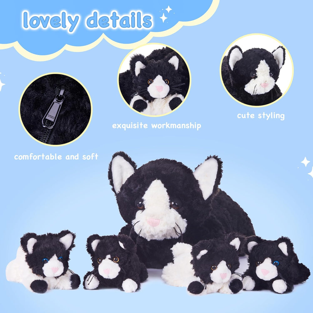 Peluches Mama Gato y Bebés EARTHSOUND, Set Suave 16