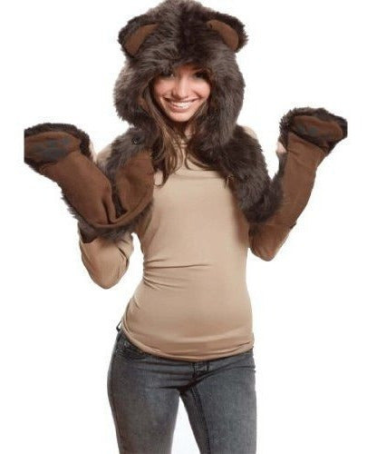 Sombrero De Felpa Con Capucha Y Animalito De Oso Marrón