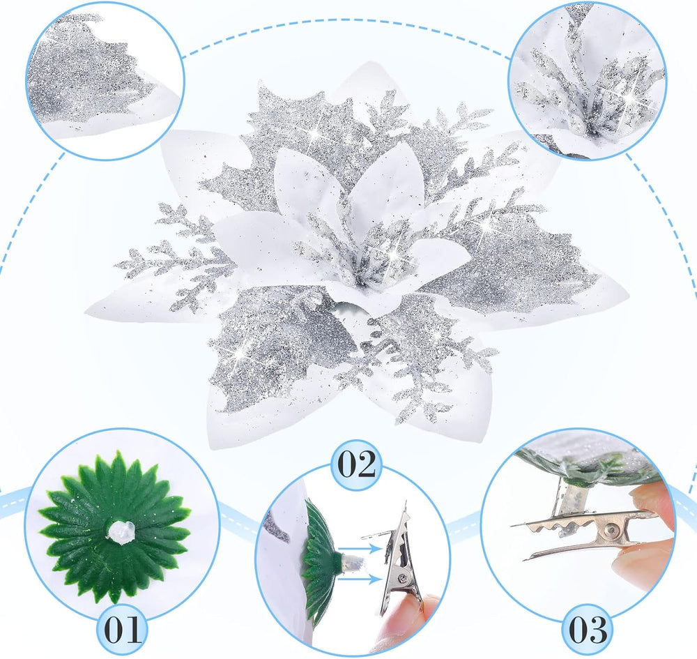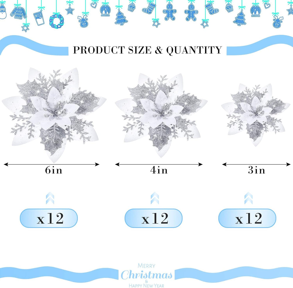 Flores Poinsettia Artificiales 36 Pcs, Decoración Navideña