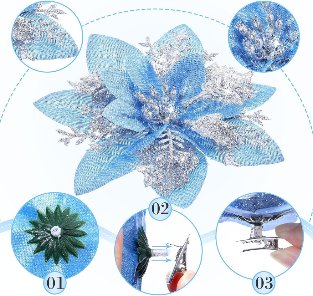 Flores Poinsettia Artificiales 36 Pcs - Decoración Navideña
