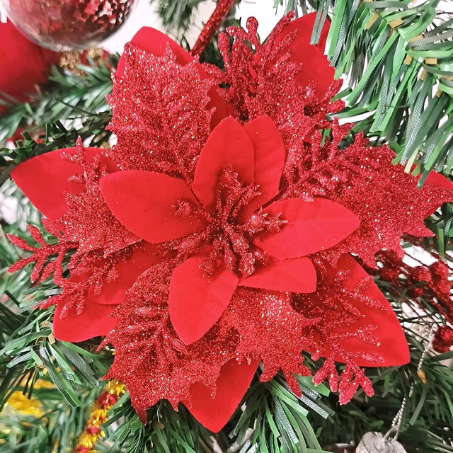 Flores Poinsettia Artificiales con Clips y Tallos, 15 Pcs