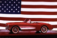 Corvette, 1957 Con Un Póster Con La Bandera De Los Ee.