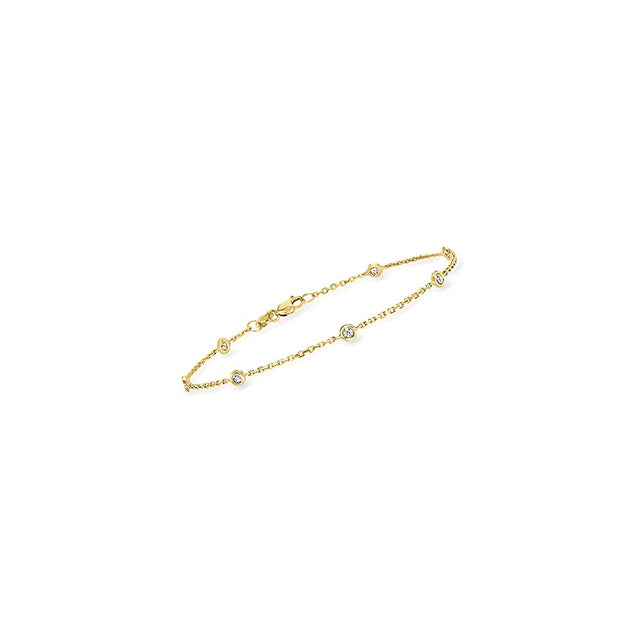 Diamantes y oro amarillo de 14 quilates. Pulsera de diamantes engastada en bisel en oro amarillo de 14 quilates. Diamantes redondos de talla brillante. Acabado pulido. 7 pulgadas. largo. 1 8 pulgadas. ancho. La cadena del cable es de 0.051 in de ancho. Cierre de langosta. El toque final: con su diseño ultra c esta pulsera de diamantes añade un toque femenino a cualquier estilo. ínalo con tu atuendo casual o formal. ROSS-SIMONS Calidad: disfruta del lujo de las joyas finas Ross-Simons. Ya sea que tu selección esté hecha de oro de 14 quila oro de 18 quilates o hermosa plata d nuestras joyas siempre son una declaración duradera. El regalo perfecto para ella: este es el regalo ideal para tu herm h ma esp sob mejor am novia o para ti mismo. Ya sea que prefiera joyas modernas o tradiciona Ross-Simons tiene una amplia selección de pulse pendien collares y anillos para elegir. Caja de regalo incluida: las joyas Ross-Simons vienen bellamente empaquetadas en una caja de reg listas para deleitarse para cualquier ocas incluyendo cumplea Navi Día de la Ma aniversar Día de San Valen bo graduaciones y mucho más Debido a las características naturales de los diaman cada uno es único y puede exhibir imperfecciones inclusio imperfecciones y turbi así variaciones de color.