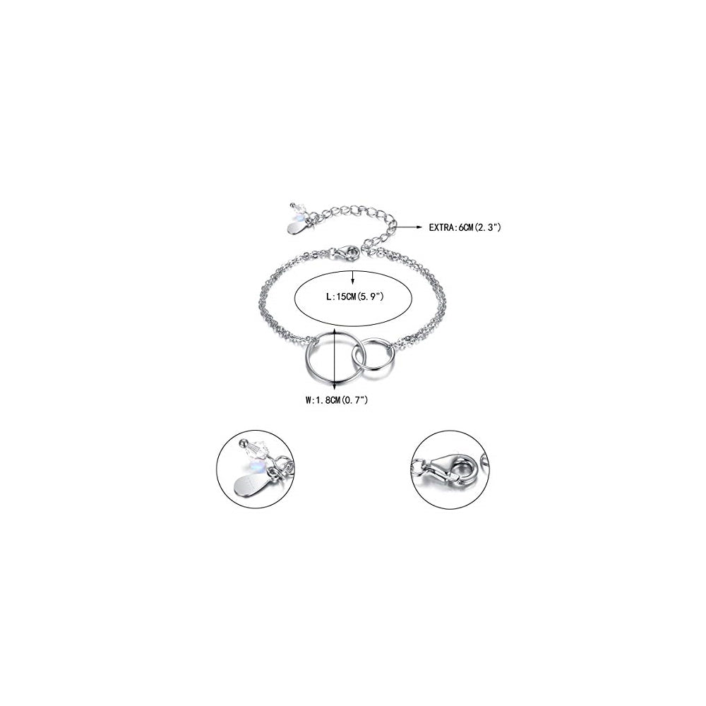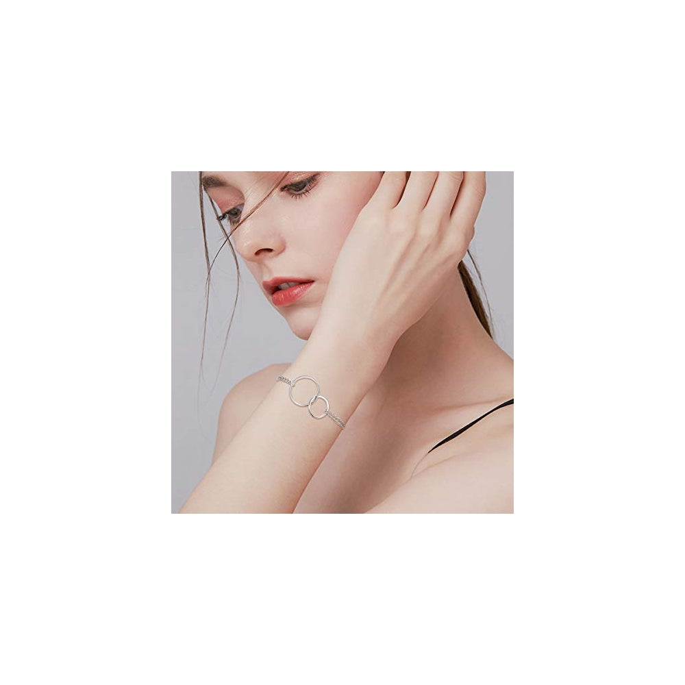 Con un diseño de círculos dobles entrelaza representa el amor infinito artido entre madre e hija o hijo hermanas amistad amantes. Expresa tu amor por tu madre hija mejor amiga hermana amante con esta pulsera de círculos de plata de ley. Será maravilloso cuando lleves esta pulsera con tu hermoso atuendo en días normales u ocasiones especiales. La pulsera está hecha de plata de le sin níq sin plomo. Será un regalo perfecto para tu abu esp herm h ma ni sobr mejor am tu persona especial o simplemente para ti mismo. Longitud: 5.9 in - 8.3 in - Ancho de fijación: 0.7 in - Peso: 0.07 oz. Un regalo perfecto para Navi día de San Valen día de la ma aniversa día de Acción de Grac b Nochevieja y cumpleaños para expresar tu amor. Adecuado para uso dia ba fie aniversa graduac cumplea cóc concursos o cualquier ocasión especial. Embalaje: esta pulsera de joyería única y sincera para madre e hija viene con una bonita caja de regalo y una bolsa de regalo
