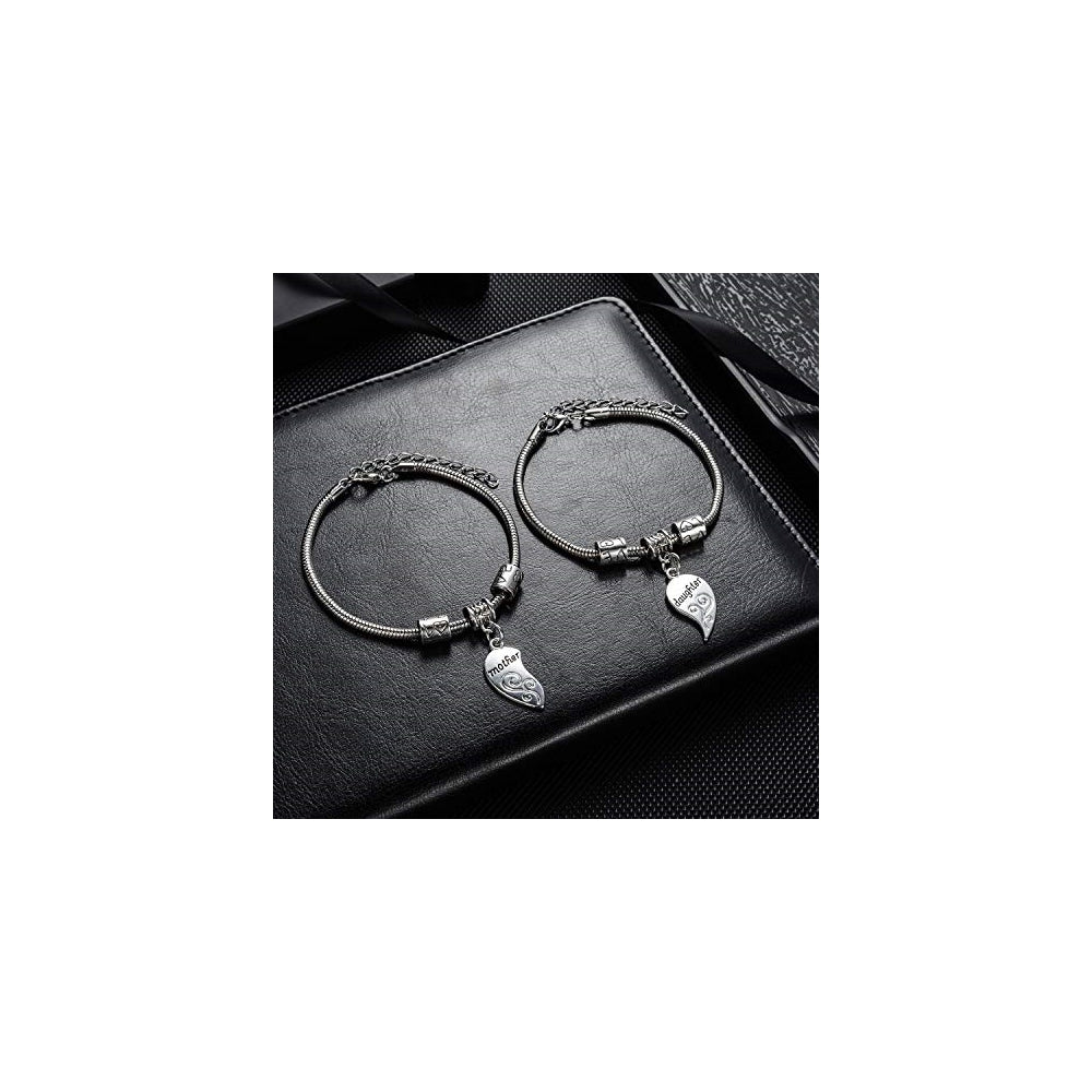 Viene con yeeqin terciopelo joyería bolsa de regalo de . listo para dar. diseño especial para la madre y hija. Estos Awesome pulseras son perfectos para llevar en su muñ para mostrar amor por su madre o hija Grabado madre hija encanto colga uno es para mamá y el otro es para DAUGHTER. 19 cm aprox (7.5") + 5 CM (2") extension pulsera bañado en plata cadena de serpiente con broche de langosta Perfecto regalos para madre y h para mostrar su amor. joya de la mejor regalo para el día de la ma Navidad y cumpleaños.