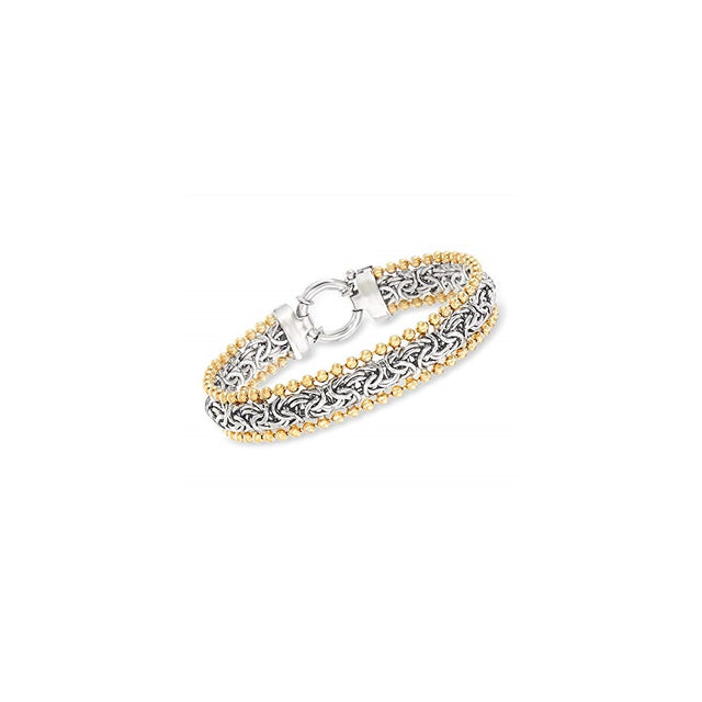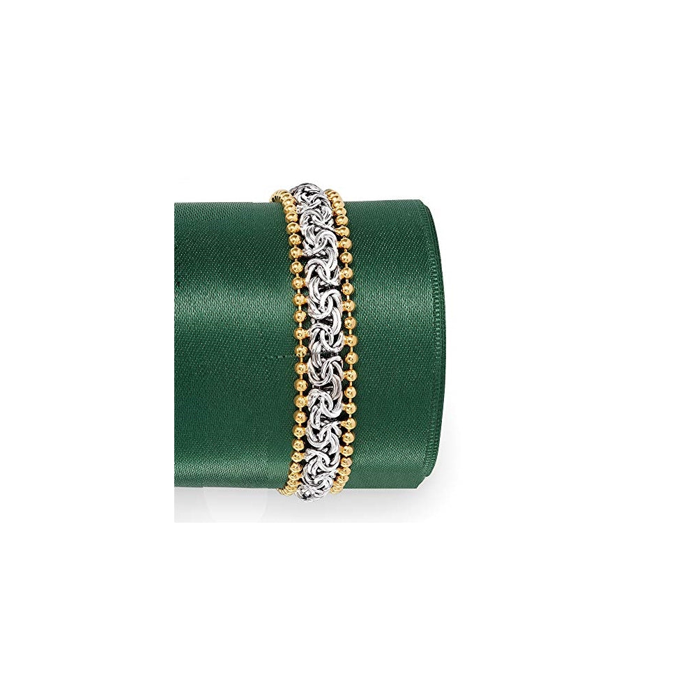 Pulseras y tobilleras cuenta bizantina de plata ley 2 tonos