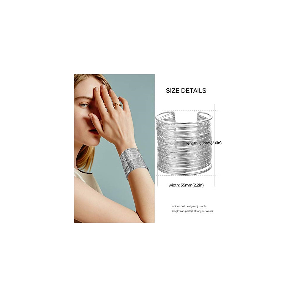 Brazaletes para mujer: 4 piezas por juego, incluyendo pulseras de alambre ancho, pulsera de puño abierto, pulseras finas y brazaletes modernos. Muchas mujeres llevan estas pulseras similares en la etapa deslumbrante para mostrar su encanto único y moderno Brazaletes para mujer: diseño único de puño, longitud ajustable, puede adaptarse perfectamente a tus muñecas, si eres chica delgada, también puedes usar como pulsera de brazo. Inofensivo para tu piel, buen chapado con superficie de brazo, el tamaño del brazalete es ajustable