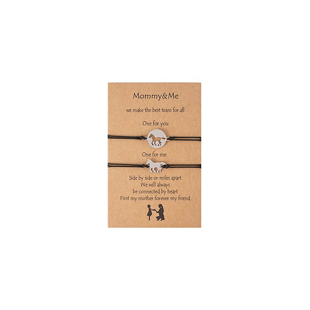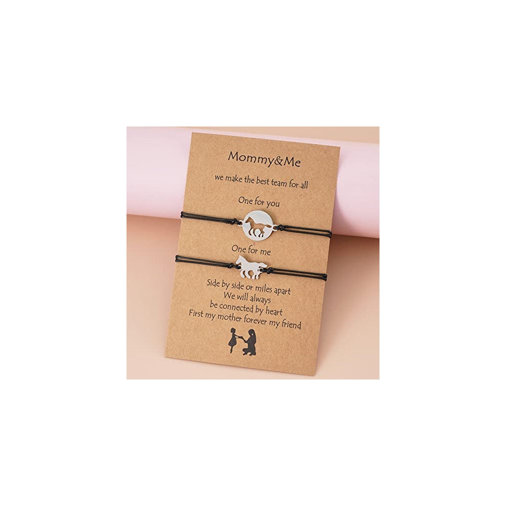 Pulseras para madre e hija para 2: la pulsera puede traernos buena suerte y fuerza, al igual que el poder y la calidez del amor de una madre. Llevar la pulsera para que tu niña/niño tenga un recordatorio de su fuerza de que siempre estás ahí para ella. Un regalo para amantes de los caballos de la suerte para mamá e hija o hijo Tamaño ajustable: la pulsera hecha a mano se puede ajustar de 4 a 11 pulgadas deslizando las cuentas para hacer un ajuste perfecto para mujeres y niñas sin aflojar fácilmente. Alta calidad: esta pulsera para mamá y yo está 100% hecha a mano con cuerda trenzada duradera con 2 pulseras de acero inoxidable. La cuerda no es fácil de romper durante mucho tiempo.