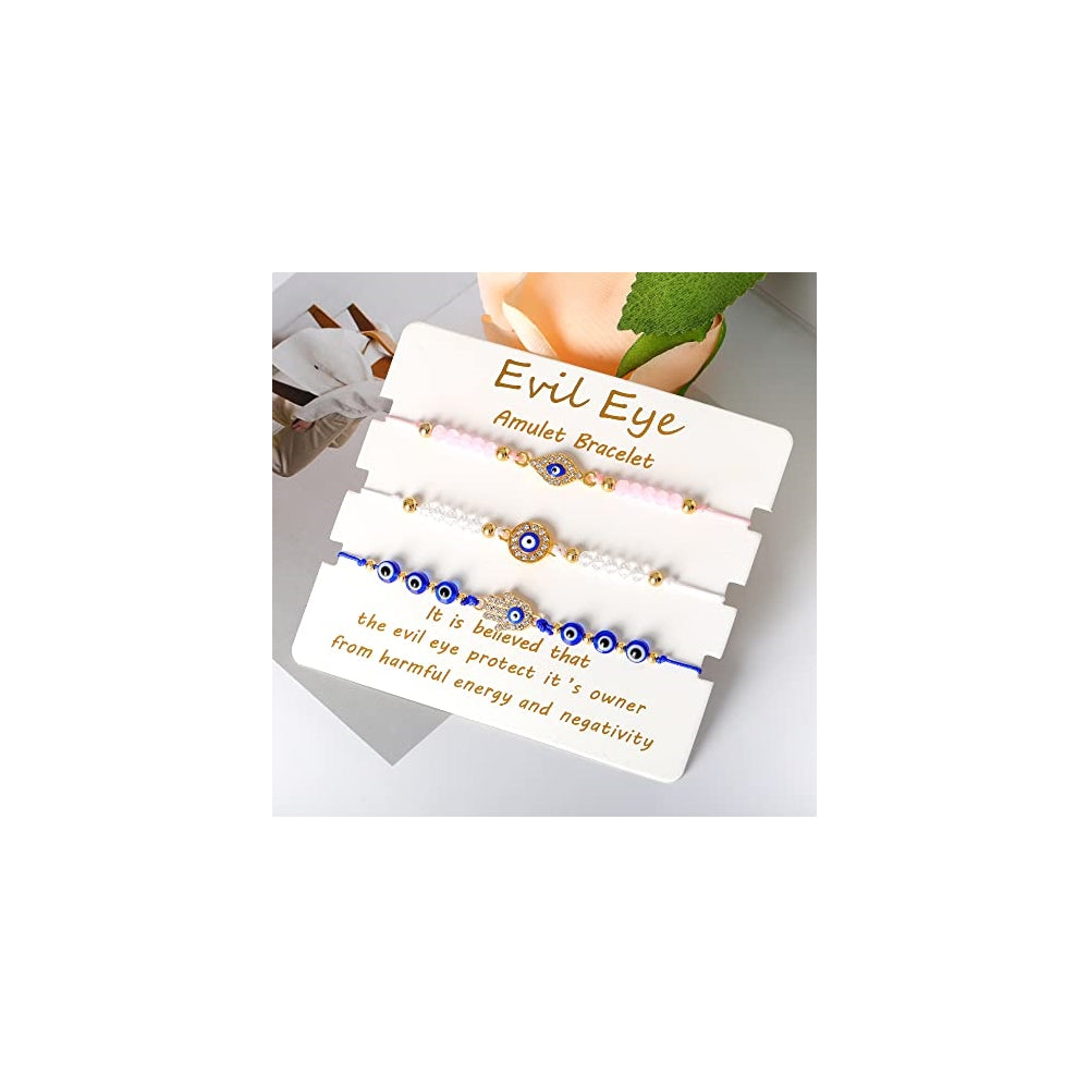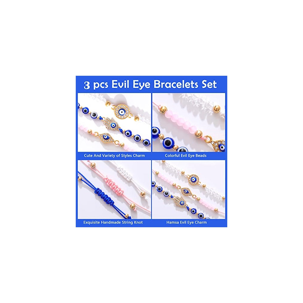 Moderno y significativo: el mal de ojo es un símbolo de auspiciosidad, suerte, protección y prosperidad, y llevar la pulsera de mal de ojo puede ofrecerte buena suerte. Se cree que las pulseras Mal de Ojo evitan la desgracia. Llevarlas puede traer buena suerte Tamaño ajustable: la pulsera de mal de ojo tiene un nudo ajustable, y la longitud ajustable varía de 6 a 13 pulgadas, lo que puede combinar con la mayoría de tamaño de muñeca. Adecuado para la mayoría de mujeres y niñas, niños Contenido del paquete: contiene 3 pulseras de mal de ojo, 100% hechas a mano y tejidas, exquisitas y duraderas, difíciles de resistir