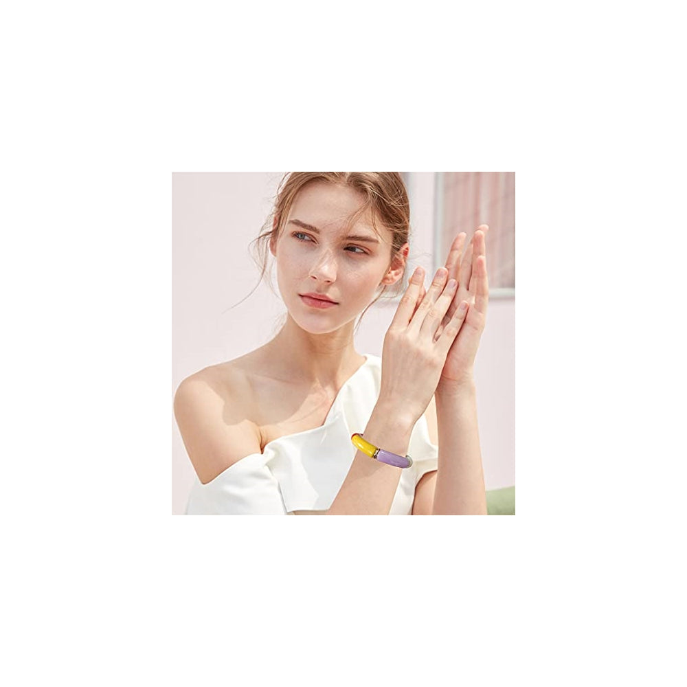 Pulsera: 100 % hecha a mano para garantizar su alta calidad. Pulsera de tamaño adecuado para mujer: El diámetro interior de la pulsera es de aproximadamente 2,2 pulgadas y el exterior es de 3,1 pulgadas. Estas pulseras están conectadas por un cordón elástico, por lo que si el tamaño de tu muñeca es de entre 5,5 a 7,5 pulgadas, son adecuadas para tu muñeca. Pulseras para mujer: Bonita y elegante, fácil de llevar, simple pero a la moda. Con un significado simple, interpreta el estilo de lujo ligero, resalta tu encanto. Como un regalo para tu familia, amigos, etc.