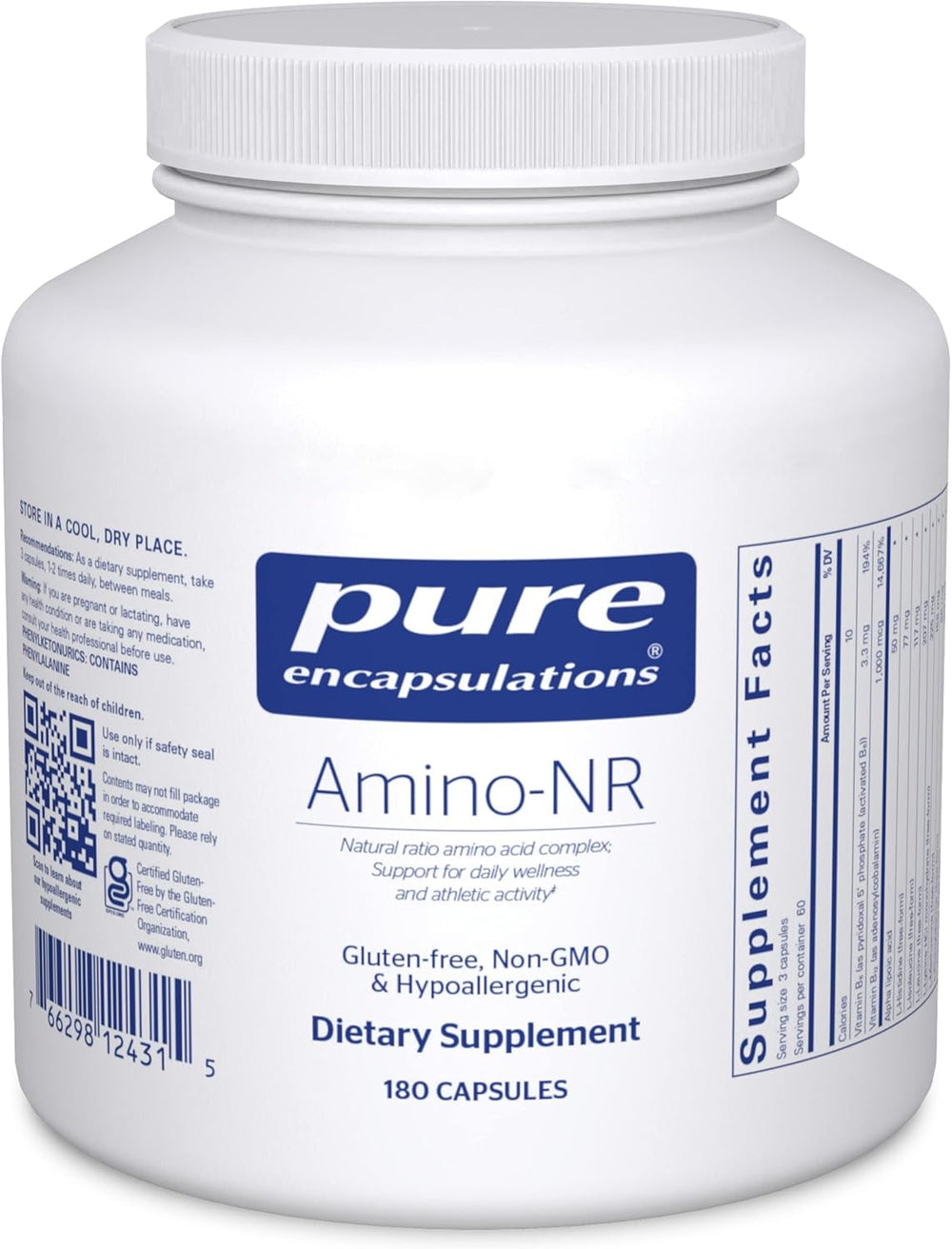Los aminoácidos proporcionan un apoyo importante al entrenamiento atlético ayudando a mejorar los múscu así promover la recuperación y disminuir el dolor muscular ocasional y la fatiga. * Apoyo inmunológico: promueve la función inm en parte apoyando niveles saludables de glutamina y glutatión. * Energía mejorada: el ácido alfa lipoico y alfa cetoglutarato proporcionan apoyo adicional para la función mitocondrial y la energía. * Calidad pura: nuestros suplementos están hechos con ingredientes de primera calidad procedentes de proveedores de confianza y guiados por nuestros expertos nutriciona luego cuidadosamente fabricados y probados para verificar su potencia y pureza. Diferencia pura: lo que nos hace diferentes no es solo nuestro proceso o lo que entra en nuestros suplemen lo que dejamos fuera también importa. Los productos Pure Enulations están libres de tr hue frutos secos de árbol y cacahue glu colores artificia sabores y edulcoran revestimientos y la OMG y aglutinan rellenos y conservantes innecesarios.