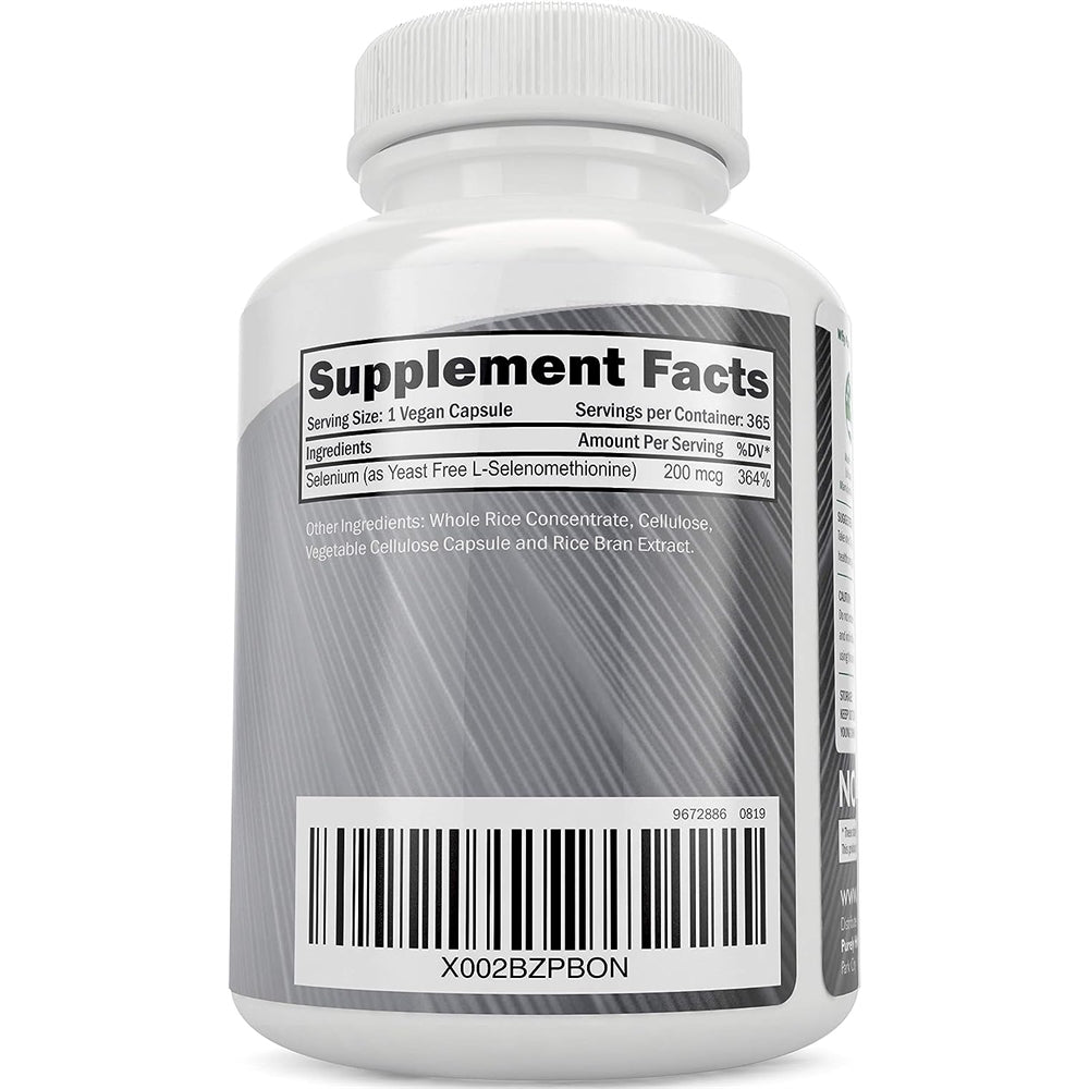 Suplemento Selenio 200 mcg 365 cápsulas veganas