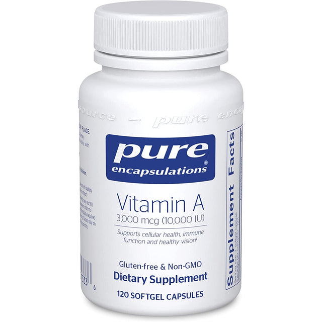 Apoyo nutricional: la vitamina A proporciona una amplia gama de apoyo nutricional para todo el cue incluyendo vis crecimiento y desarrollo ó función reproduct crecimiento celu función inm membranas mucosas y la integridad de las superficies epiteliales. * Salud inmunológica: la vitamina A también es un nutriente esencial para los sistemas de defensa naturales del cuerpo. * Salud ocular: la vitamina A es un nutriente soluble necesario para una visión saludable. * Calidad pura: nuestros suplementos están hechos con ingredientes de primera calidad procedentes de proveedores de confianza y guiados por nuestros expertos nutriciona luego cuidadosamente fabricados y probados para verificar su potencia y pureza. Diferencia pura: lo que nos hace diferentes no es solo nuestro proceso o lo que entra en nuestros suplemen lo que dejamos fuera también importa. Los productos Pure Enulations están libres de tr hue frutos secos de árbol y cacahue glu colores artificia sabores y edulcoran revestimientos y la OMG y aglutinan rellenos y conservantes innecesarios.