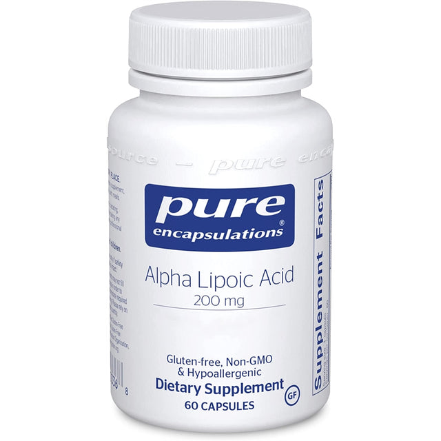 Soporte de energía celular: Un componente clave del proceso metabólico, el ácido alfa lipoico produce energía en los músculos y dirige las calorías a la producción de energía. * Soporte del sistema nervioso: el ácido alfa lipoico modula la actividad del metabolito del óxido nítrico y promueve una microcirculación saludable. * Apoya el metabolismo de los carbohidratos: el ácido alfa lipoico apoya la absorción saludable de carbohidratos y ayuda a mantener una utilización saludable de carbohidratos. * Calidad pura: nuestros suplementos están hechos con solo ingredientes de primera calidad procedentes de proveedores confiables y guiados por nuestros expertos en nutrición, luego cuidadosamente fabricados y probados para verificar su potencia y pureza. Diferencia pura: lo que nos hace diferentes no es solo nuestro proceso o lo que entra en nuestros suplementos, lo que dejamos fuera importa, también. Los productos Pure Encapsulations están libres de trigo, huevos, nueces de árbol y maní, gluten, colores artificiales, sabores y edulcorantes, revestimientos y goma laca, OMG, y aglutinantes, rellenos y conservantes innecesarios.