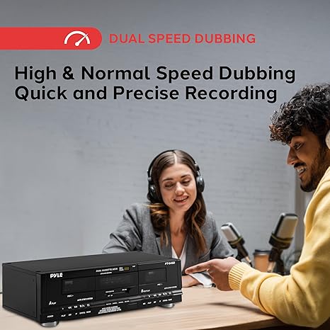 DUAL SPEED DUBBING: The dual cassette tape deck provides norma an high-speed audio cassette dubbing. MORE CONTROL OVER PRODUCTION: The dual cassette player includes a 3-digit tape coun CrO2 tape selector and auto tape selector. It provides excellent recording level control for increased production level. The auto stop function provides further control over end result. SEAMLESS INTERFACE CONNECTIONS: The cassette player dual deck provides a digital link interface for connecting to the PT600A amplifier. Included are RCA line inputs and outputs. MULTI-FUNCTION DISPLAY: The audio cassette deck has a dual color multi-purpose fluorescent display for ease of use. VOLUME CONTROL: Enjoy dynamic noise reduction and control over record and play level meters with the dual cassette radio.