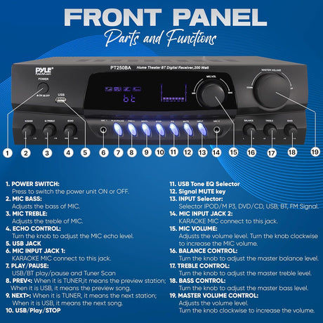 Amplificador de cine en casa con Bluetooth PYLE-HOME P2001BT
