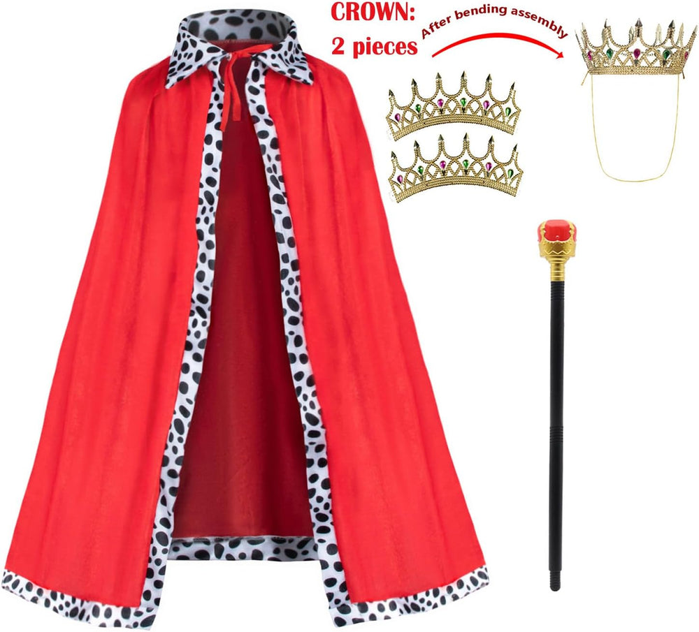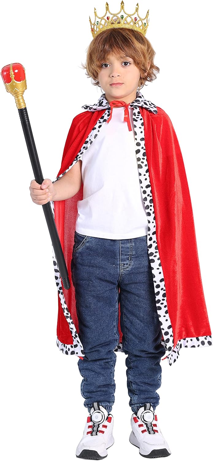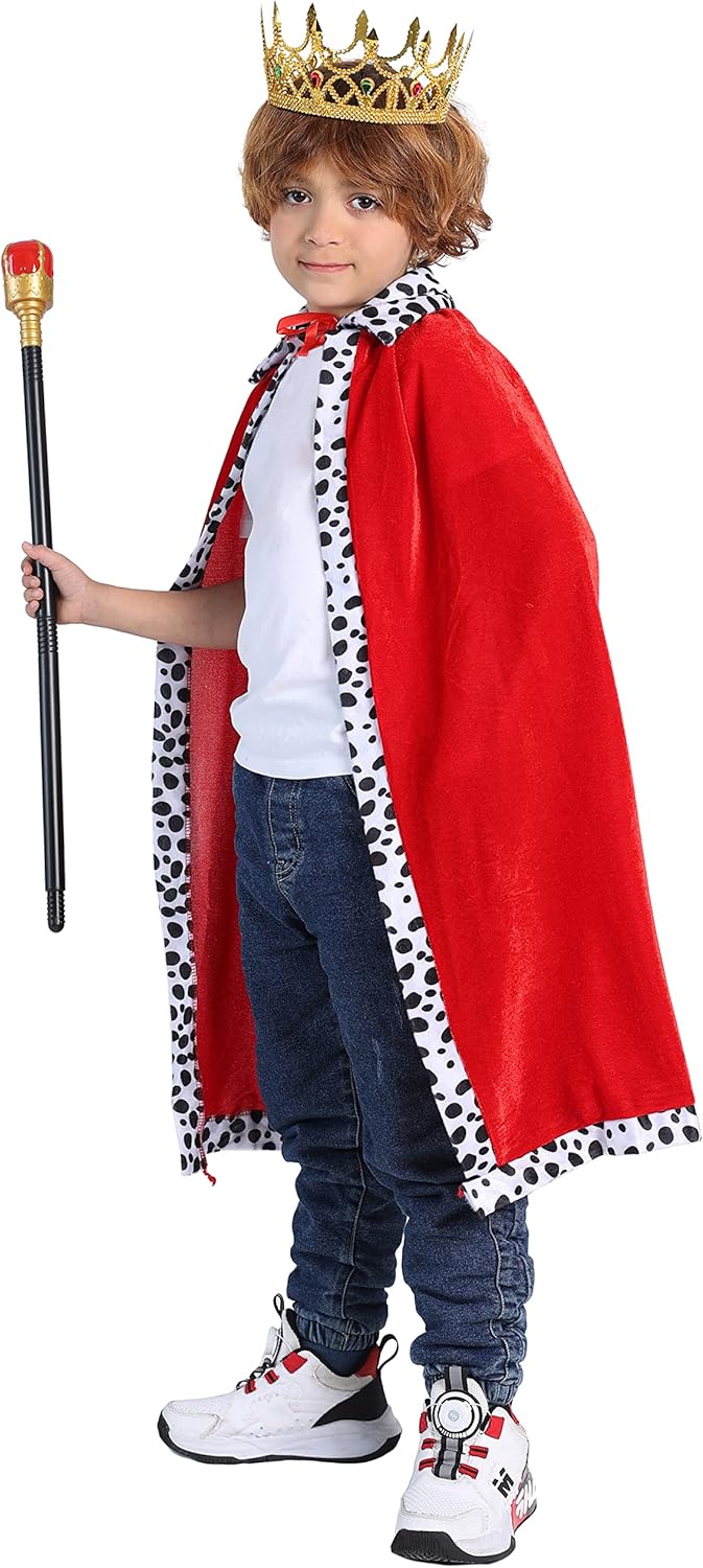 Disfraz de Rey para Niños, Set de Capa, Corona y Cetro