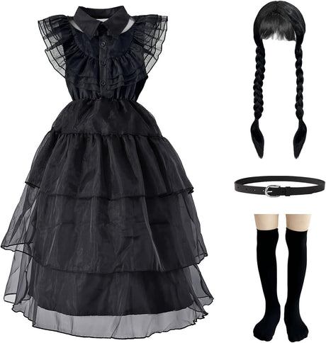 Disfraz de Halloween para niñas, incluye vestido, peluca y calcetas
