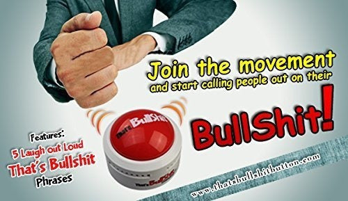 El botón Bullshit del que es el método preferido de que alguien en BS, cuando inicio spewing ridículo está aquí. Se incluyen pilas con el botón Bullshit efectos de sonido. Un divertido juguete y divertido Gag regalo que cuenta con 5 golpear el piso con risa 'Bullshit frases. "Atención., el medidor Bullshit detectado principales BS. ha confirmado que definitivamente algunos bulllshhit." – "Ah, ya Gotta se kidding me. que de tres litros De Bullshit en un dos galones cubeta. " – " Oh no no has. reloj de algunos Bullshit. " – " Wow, para que su paso. acaba de recorrido en algunos bulllshhit. "y" en serio que de toro Bull bullllllshhhit. " El botón rojo gigante conversaciones las luces de hablar, hasta, flashes y incluso incluye múltiples outrageously divertidos efectos de sonido de fondo. Ideal para la oficina, de TPU, gadgets, Gag regalo, regalo de cumpleaños, calcetín, stuffers, college habitaciones, regalos, recámara, computadora juguetes, compañeros de trabajo, e incluso la mesa de la cocina.