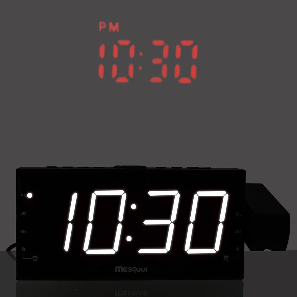 Características . ÁNGULO AJUSTABLE DE 180 ° Y PROYECCIÓN ULTRA-CLARA: la elegante proyección giratoria de 180 grados garantiza una visión clara y fresca del tiempo. Proyecta un tiempo ultra claro en tus paredes o techo. Siempre saber la hora ENFRIAMIENTO CON RADIO AM , FM y ESTACIONES DE RADIO . No es necesario apresurarse a su teléfono inteligente. En su lugar, disfrute de una radio digital AM , FM. El sintonizador AM , FM le permite elegir entre una amplia gama de música, programas de entrevistas, deportes, historias, programas de entrevistas matutinos, transmisiones, pronóstico del tiempo, tráfico y mucho más. También puede preestablecer las estaciones 10AM y 10FM para un acceso rápido y fácil la próxima vez. PANTALLA SLEEK 7 '' y DIMMER- Pantalla ultragrande de 7 pulgadas La pantalla LED blanca es fácil de leer sin importar la distancia. Opere la configuración de brillo de acuerdo con sus preferencias personales. Ajuste el brillo adecuado, elija entre Alto-Medio-Bajo. A la distancia. Opere la configuración de brillo de acuerdo con sus preferencias personales. Ajuste el brillo adecuado, elija entre Alto-Medio-Bajo. ALARMAS DOBLES y ALARMA DE RADIO O ALARMA DE ZUMBADOR: este sorprendente reloj despertador digital con radio y proyector cuenta con convenientes alarmas duales para una mejor vigilia. Despiértese con un timbre de alarma predefinido o una estación de radio de alarma. la alarma suena cada vez más fuerte, por lo tanto, no lo asustará para que se despierte del sueño dulce CARGA USB y BATERÍA DE RESPALDO . Adecuado para teléfonos celulares. Se requiere alimentación de CA para todas las funciones, 2 baterías AAA de respaldo de su tiempo de configuración en caso de corte de energía.