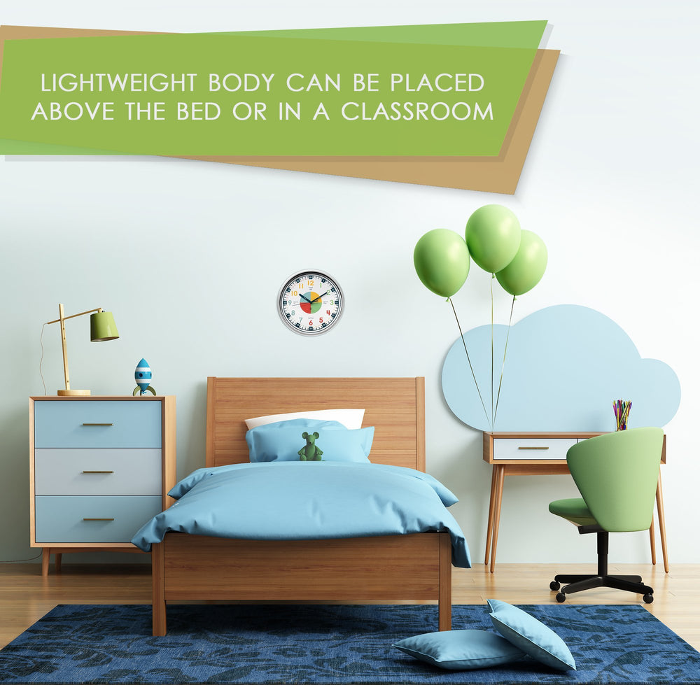 Contando la hora del reloj de enseñanza. Habitación infantil, decoración de la sala de juegos Reloj de pared analógico silencioso. Gran recurso de tiempo de reloj de aprendizaje visual. Herramienta educativa perfecta para educación en el hogar, aula, maestros y padres.