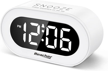 Reloj despertador digital ovalado con luz nocturna y respaldo