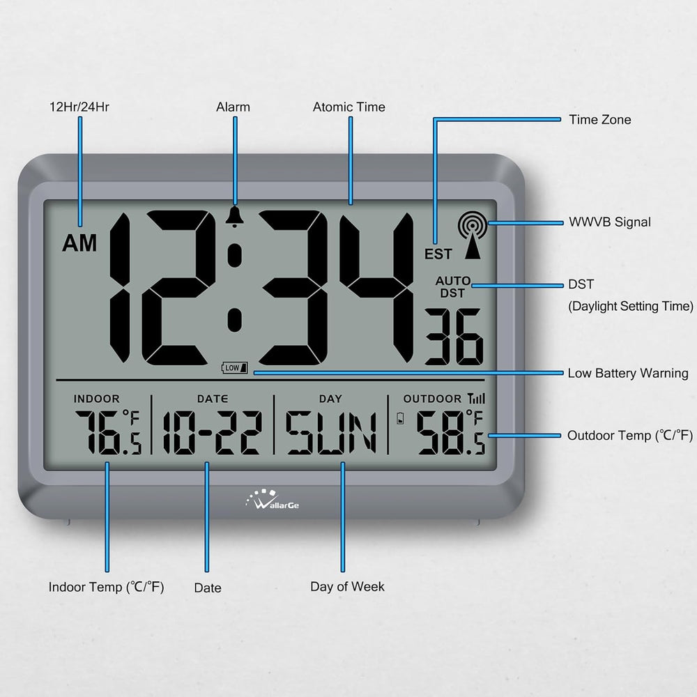 Reloj Atómico Digital con Temperatura y 4 Zonas Horarias